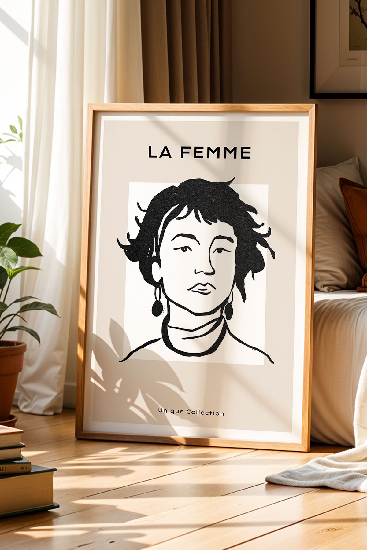 DOĞAL AHŞAP - Genç Kadın Çizimi Doğal Ahşap Çerçeveli Duvar Tablosu