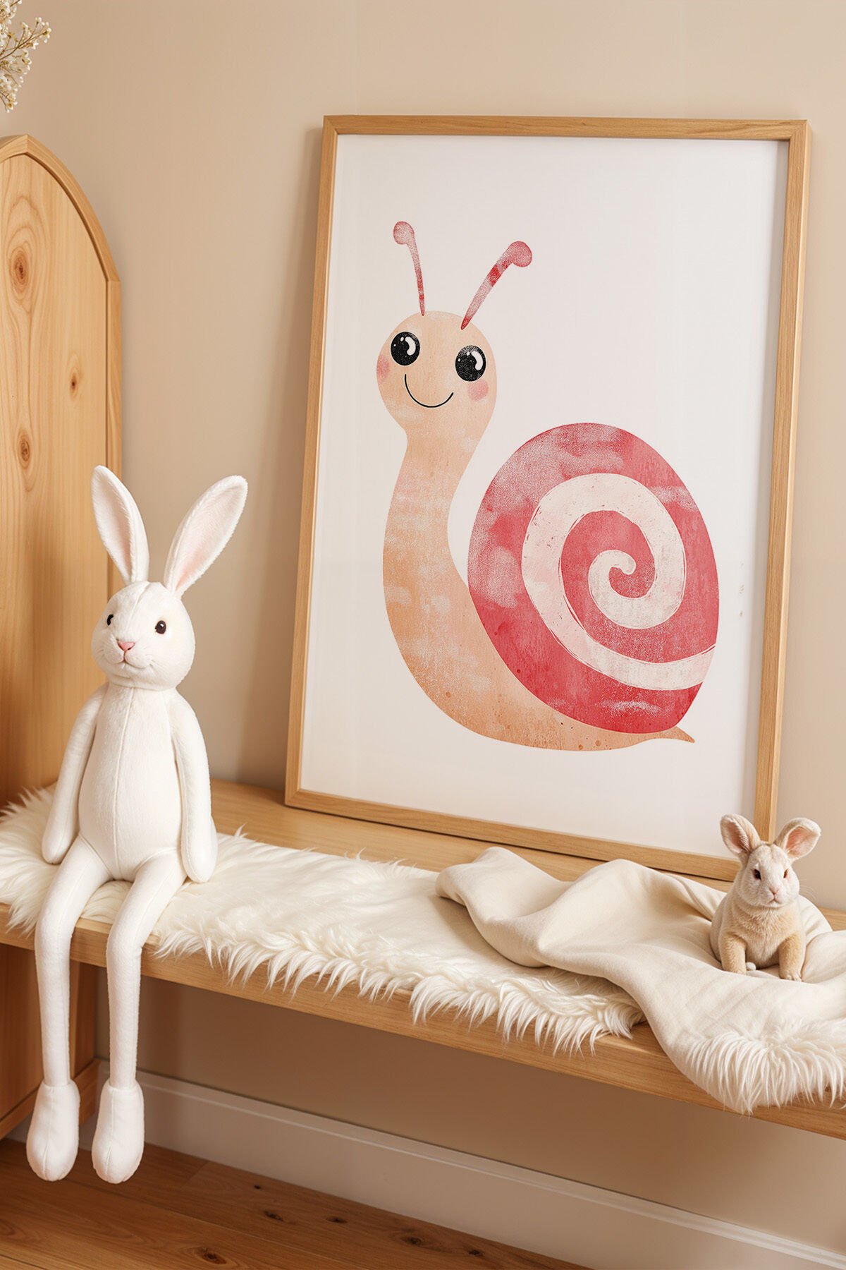 DOĞAL AHŞAP - Gülümseyen Salyangoz Çocuk Odası Ahşap Çerçeveli Duvar Tablosu