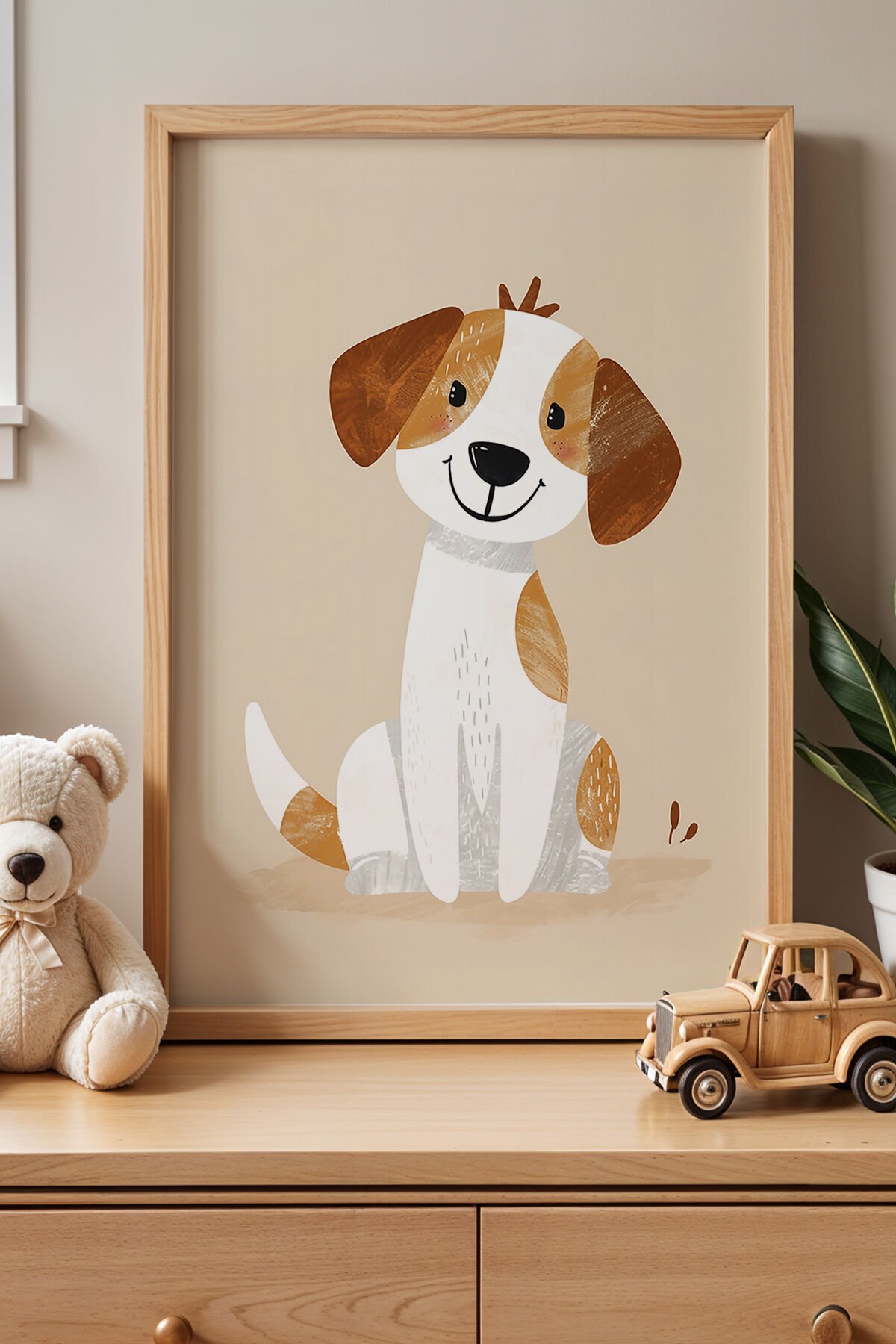 DOĞAL AHŞAP - Gülümseyen Sevimli Köpek Çocuk Odası Ahşap Çerçeveli Duvar Tablosu