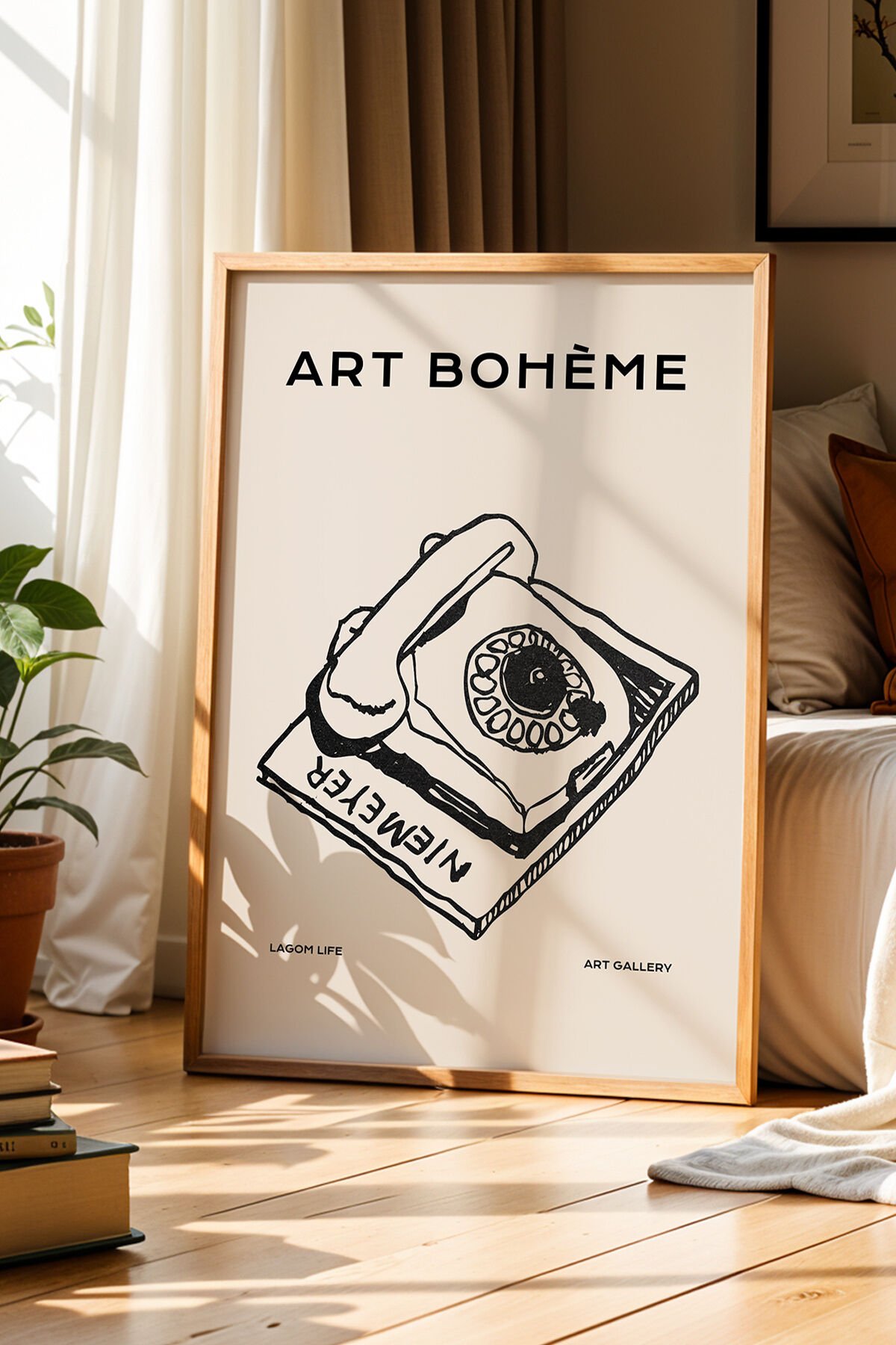 DOĞAL AHŞAP - Hatıralar - Retro Telefon Art Boheme Doğal Ahşap Çerçeveli Duvar Tablo