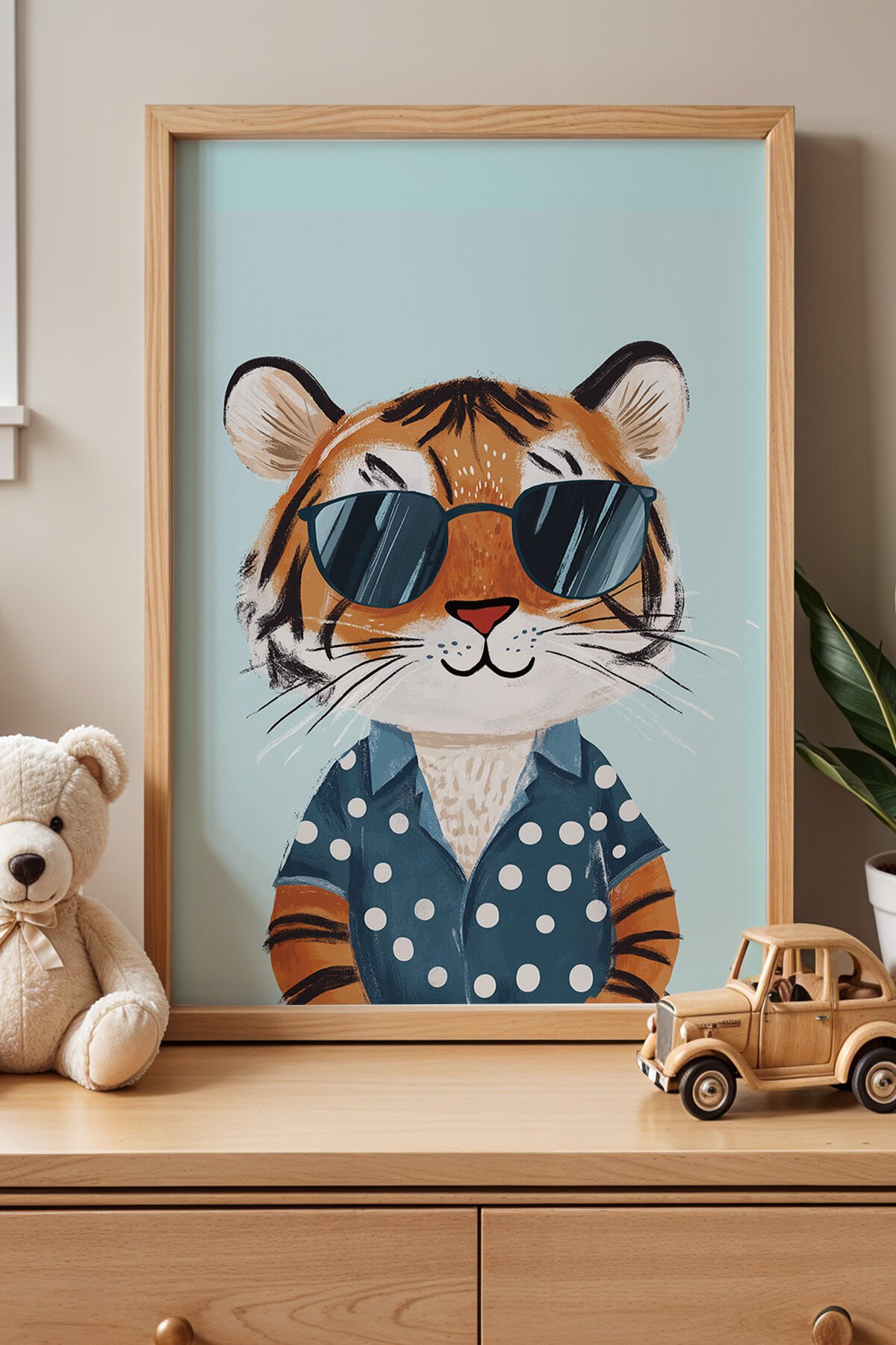 DOĞAL AHŞAP - Havalı Kaplan Çocuk Odası Ahşap Çerçeveli Duvar Tablosu