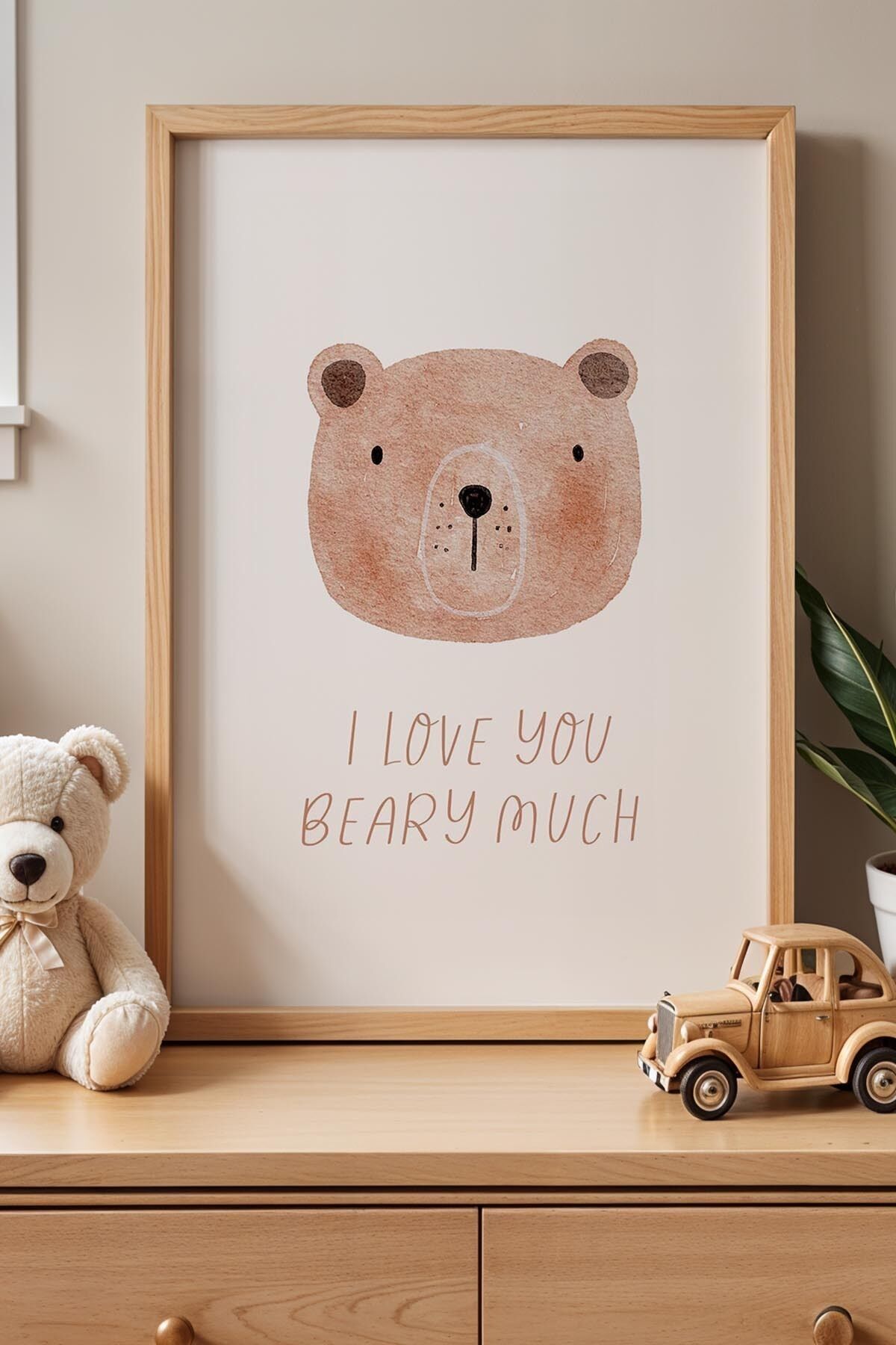 DOĞAL AHŞAP - Hayal Kurmayı Seven Ayı Çocuk Odası Ahşap Çerçeveli Duvar Tablosu