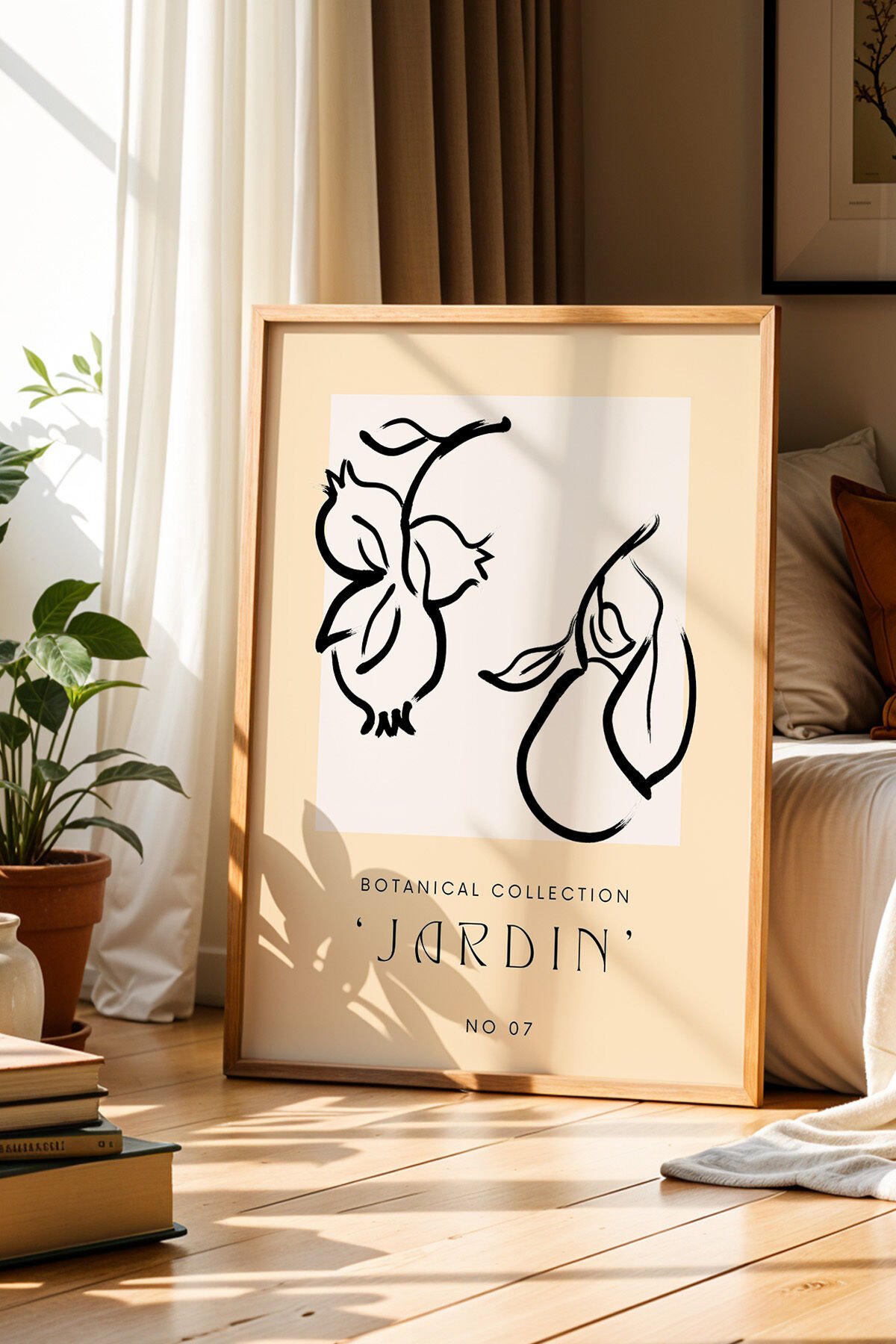 DOĞAL AHŞAP - Jardin Serisi Meyve Çizimi Minimalist Bej Mutfak Doğal Ahşap Çerçeveli Duvar Tablosu