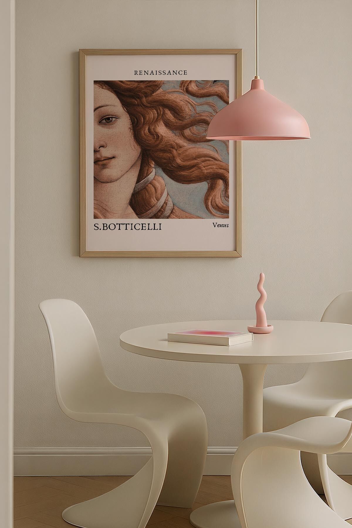 DOĞAL AHŞAP - Kadın ve Çiçek Portre Retro Trendy Maksimalist Sanatı Ahşap Çerçeveli Duvar Tablosu