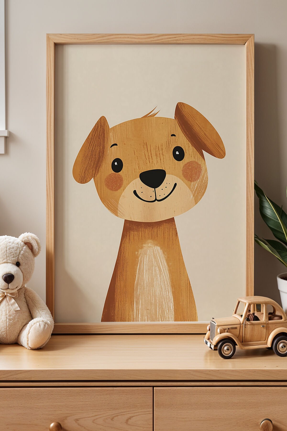 DOĞAL AHŞAP - Kahverengi Benekli Köpek Çocuk Odası Ahşap Çerçeveli Duvar Tablosu