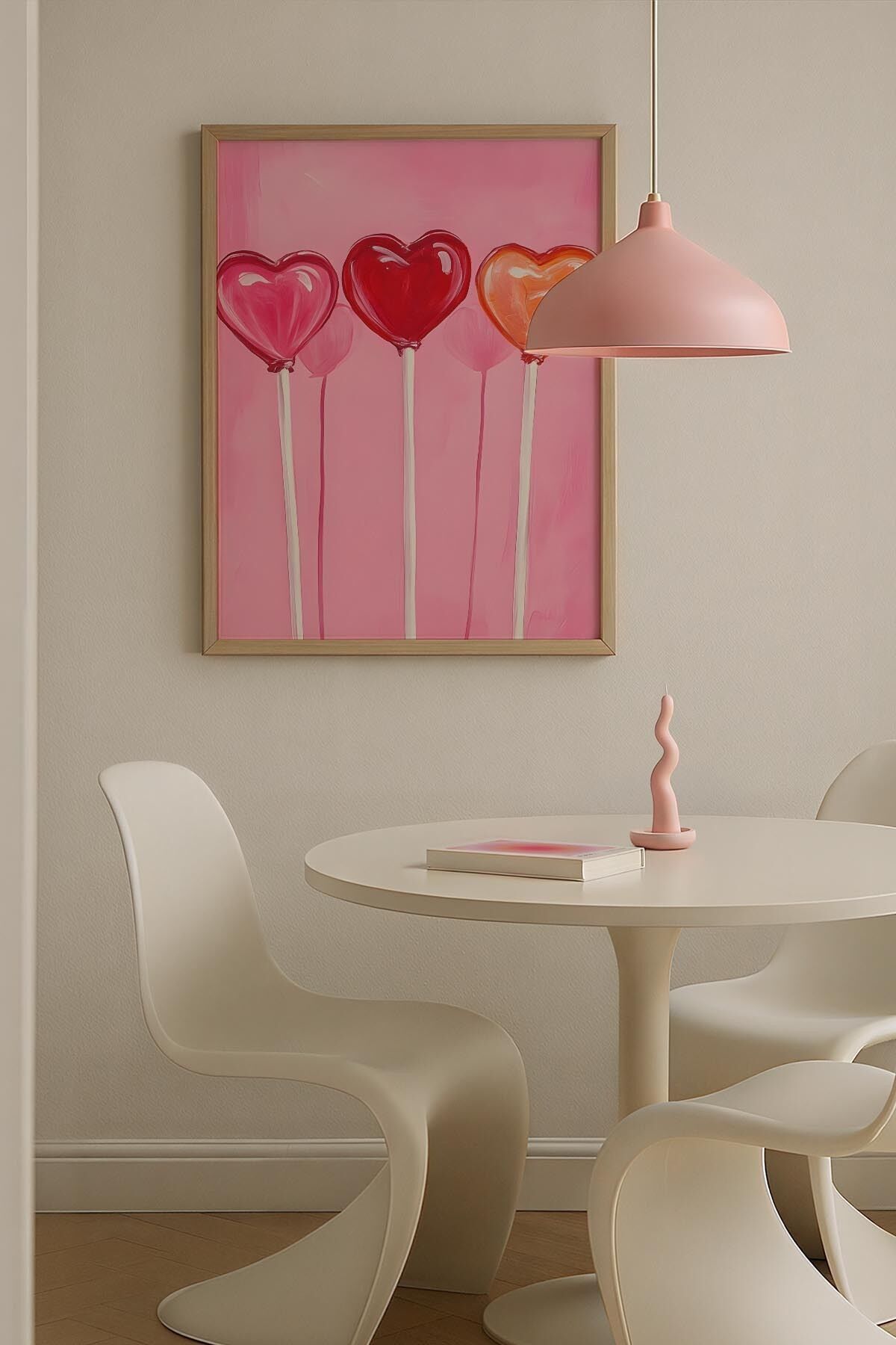 DOĞAL AHŞAP - Kalp Balon Parti Renkli Trendy Maksimalist Sanatı Ahşap Çerçeveli Duvar Tablosu