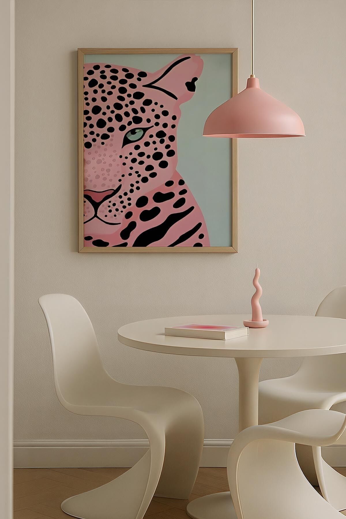 DOĞAL AHŞAP - Kalp Deseni Leopar Trendy Maksimalist Sanatı Ahşap Çerçeveli Duvar Tablosu