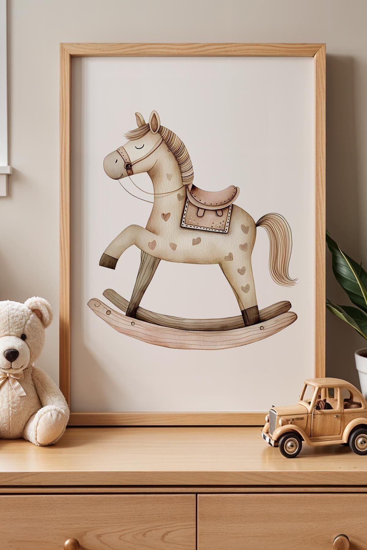 DOĞAL AHŞAP - Kalpli Ahşap Sallanan Oyuncak At Çocuk Odası Ahşap Çerçeveli Duvar Tablosu
