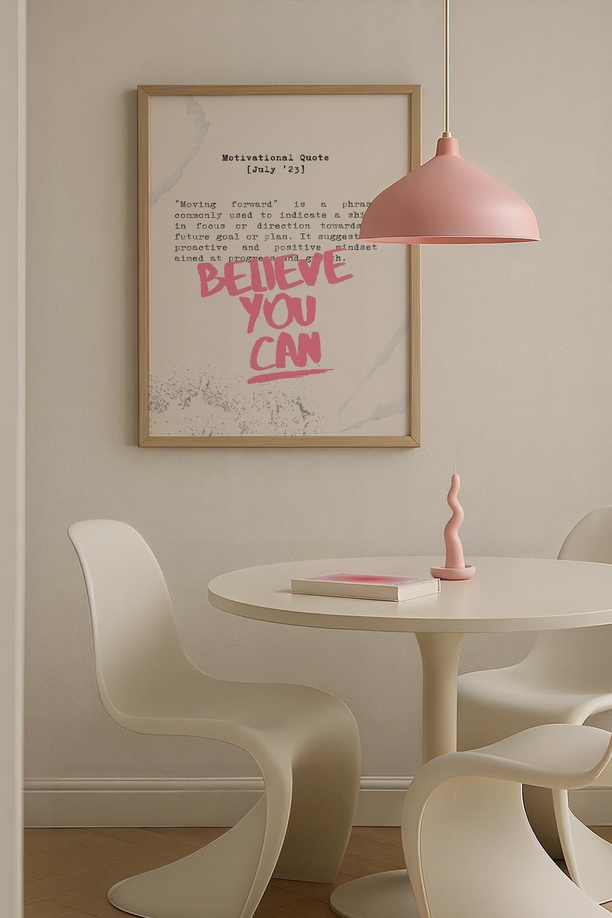 DOĞAL AHŞAP - Kalpli Yazı Tipografi Beyaz Maksimalist Sanatı Ahşap Çerçeveli Duvar Tablosu