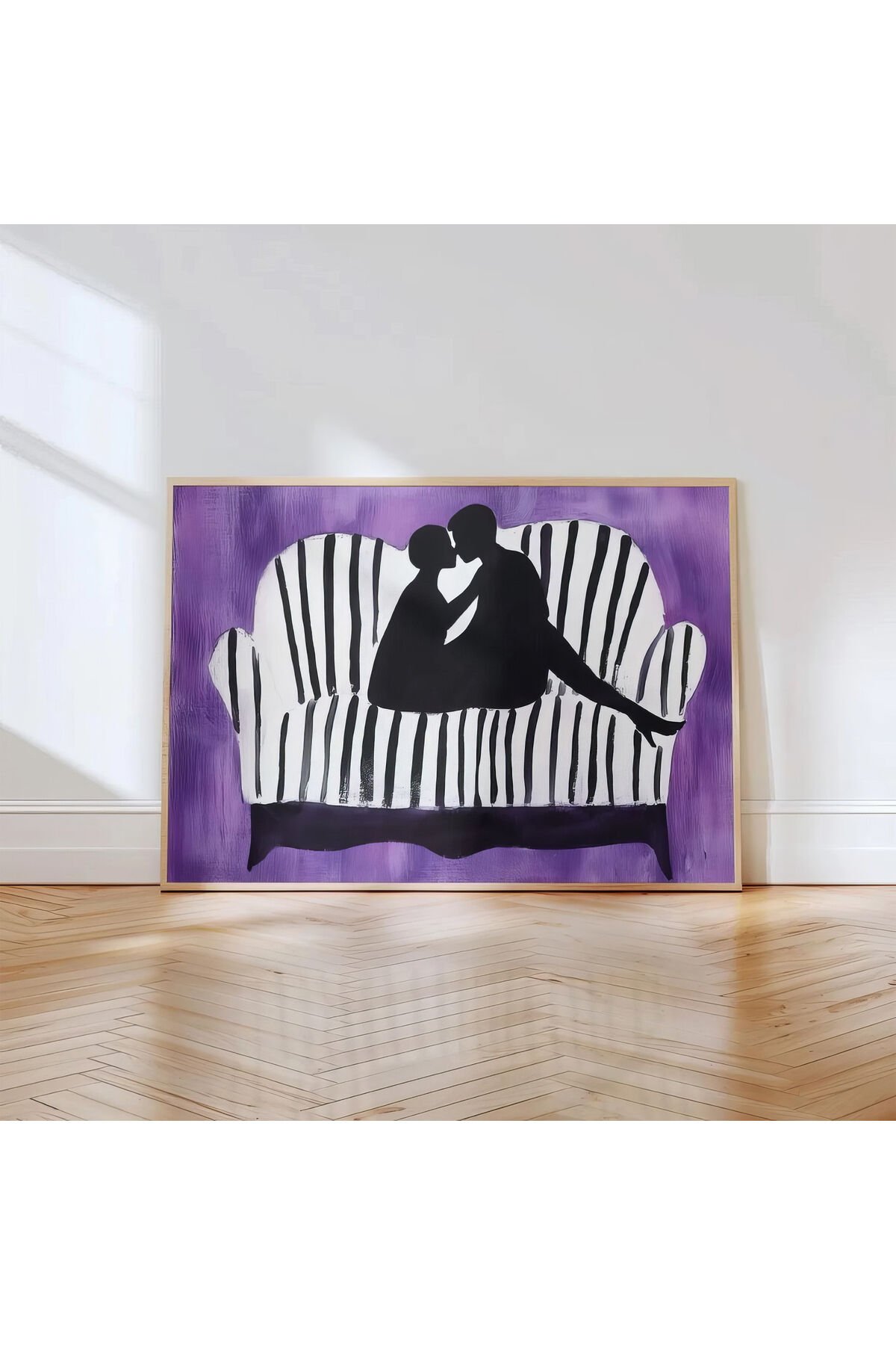 DOĞAL AHŞAP - Kanepede romantik çift baskısı Nude Ahşap Çerçeveli Duvar Tablosu