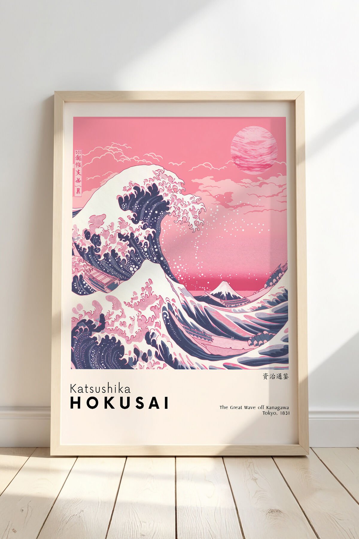 DOĞAL AHŞAP - Katsushika Hokusa Büyük Dalga II Minimalist Japon Vintage Doğal Ahşap Çerçeveli Tablo