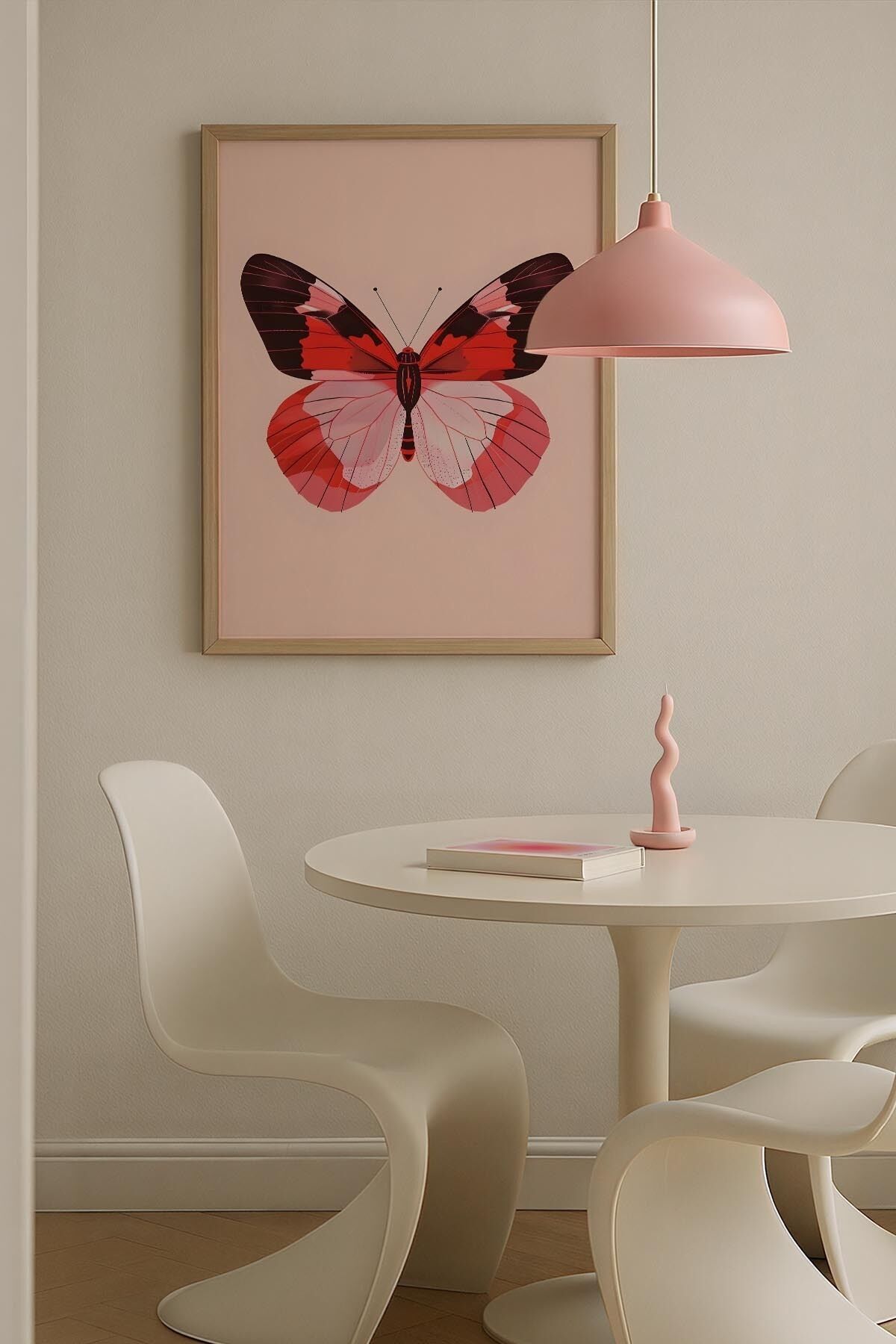 DOĞAL AHŞAP - Kelebek Kırmızı Pembe Trendy Maksimalist Sanatı Ahşap Çerçeveli Duvar Tablosu