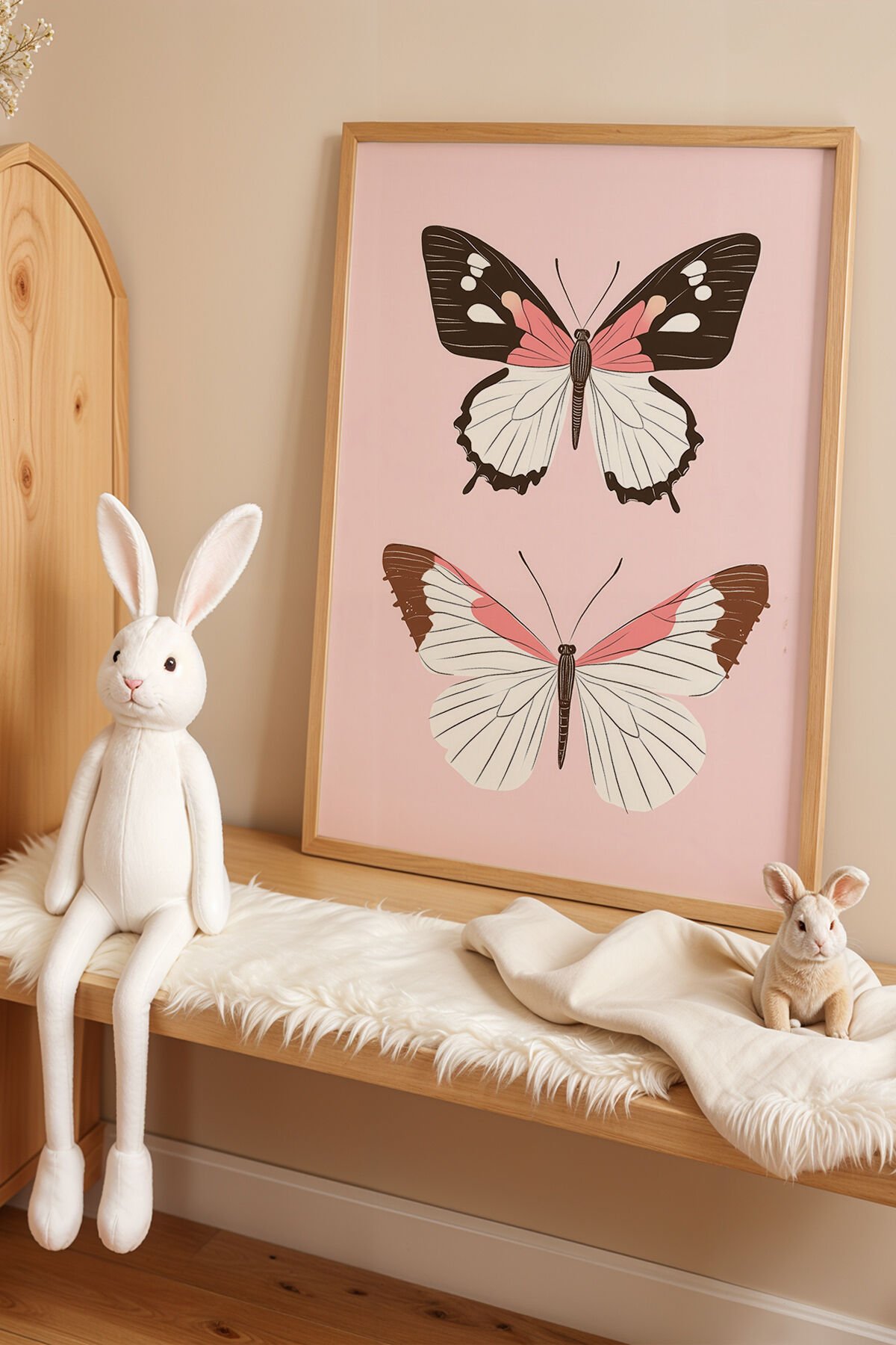 DOĞAL AHŞAP - Kelebekler Çocuk Odası Ve Bebek Odası Ahşap Çerçeveli Duvar Tablosu
