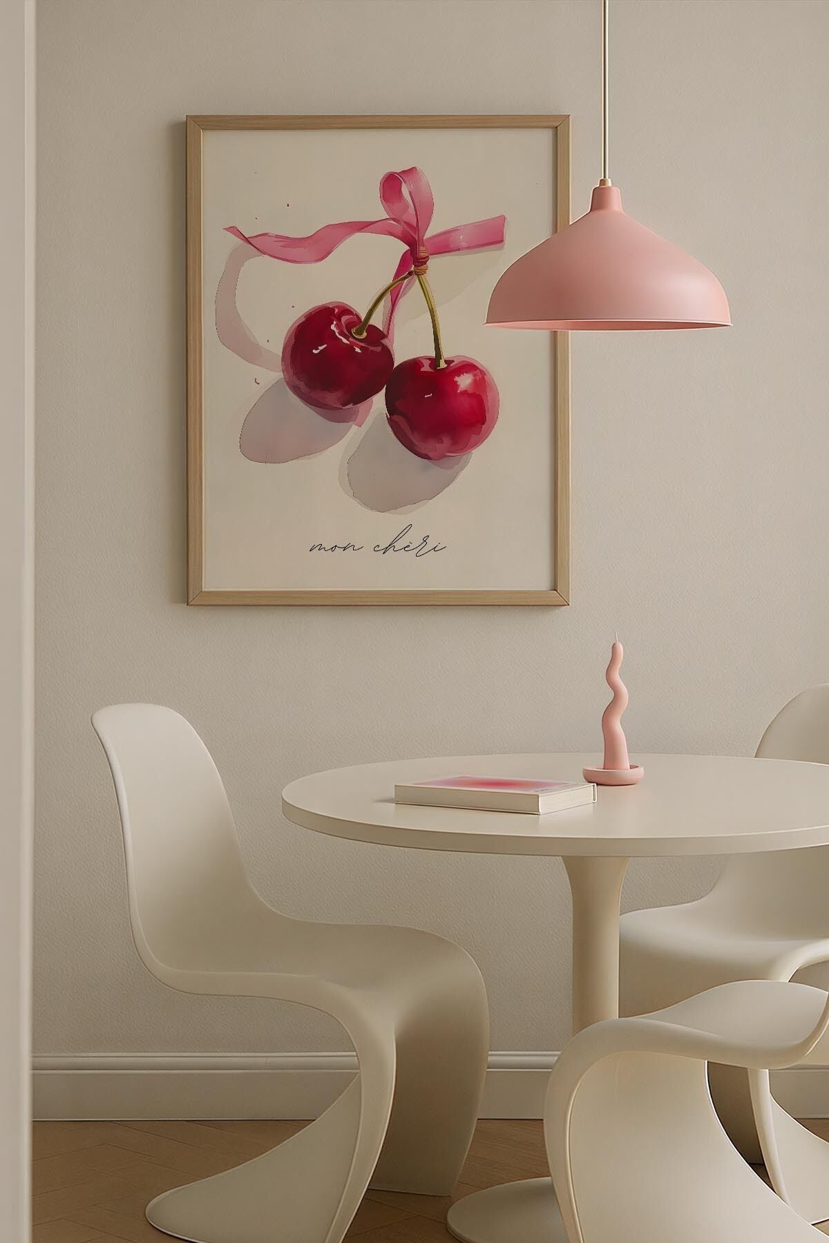 DOĞAL AHŞAP - Kiraz Çift Kalpli Trendy Maksimalist Sanatı Ahşap Çerçeveli Duvar Tablosu