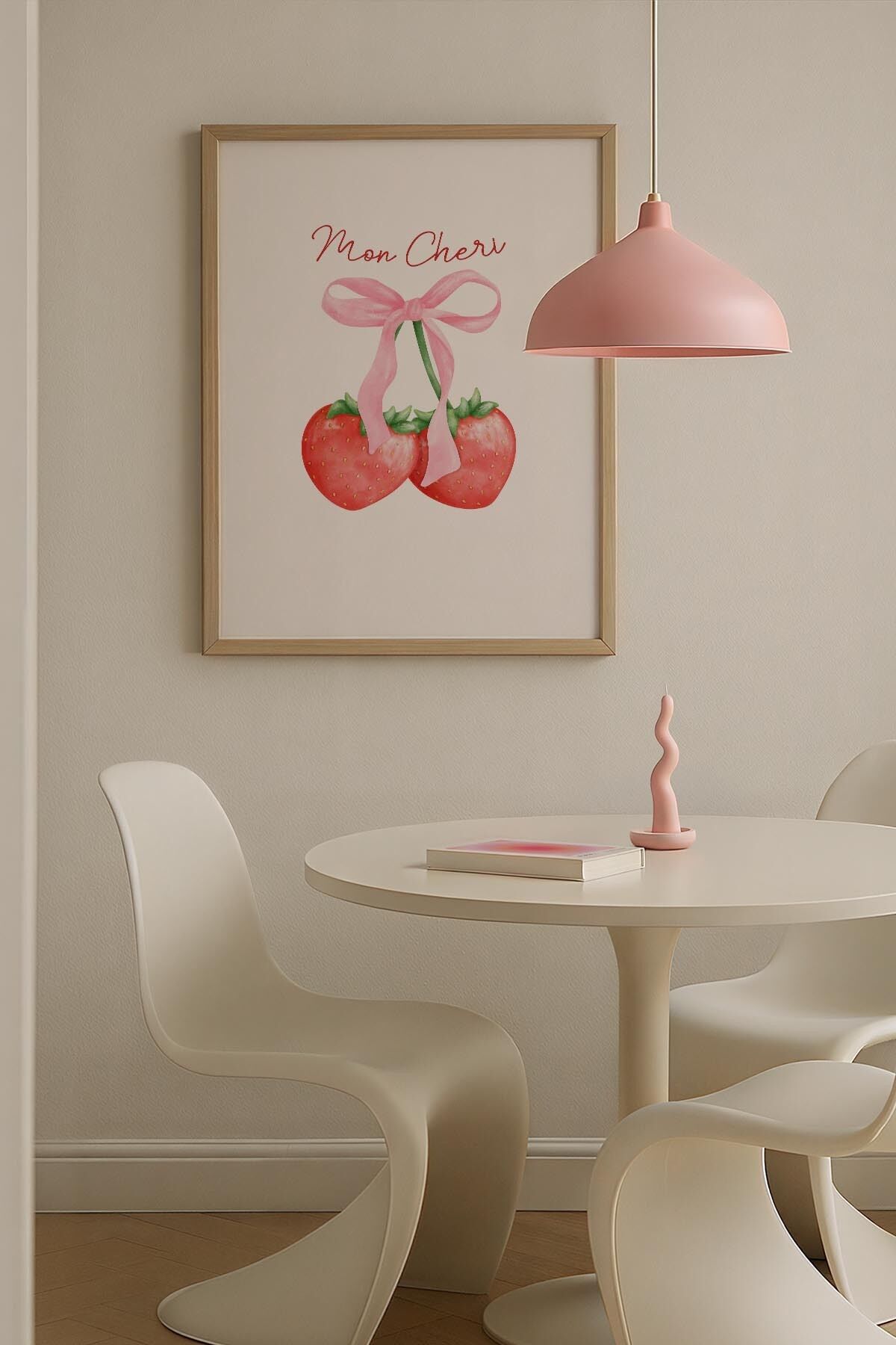 DOĞAL AHŞAP - Kiraz Temalı Kırmızı Maksimalist Sanatı Ahşap Çerçeveli Duvar Tablosu