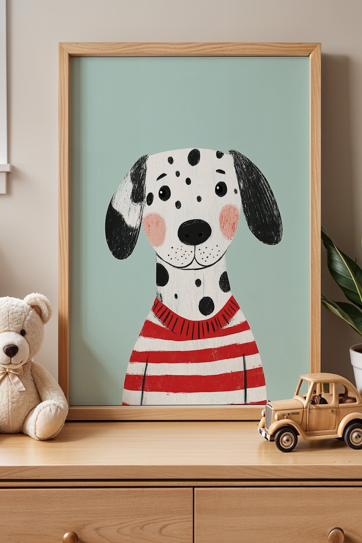 DOĞAL AHŞAP - Kırmızı Kazaklı Dalmaçyalı Köpek Çocuk Odası Ahşap Çerçeveli Duvar Tablosu