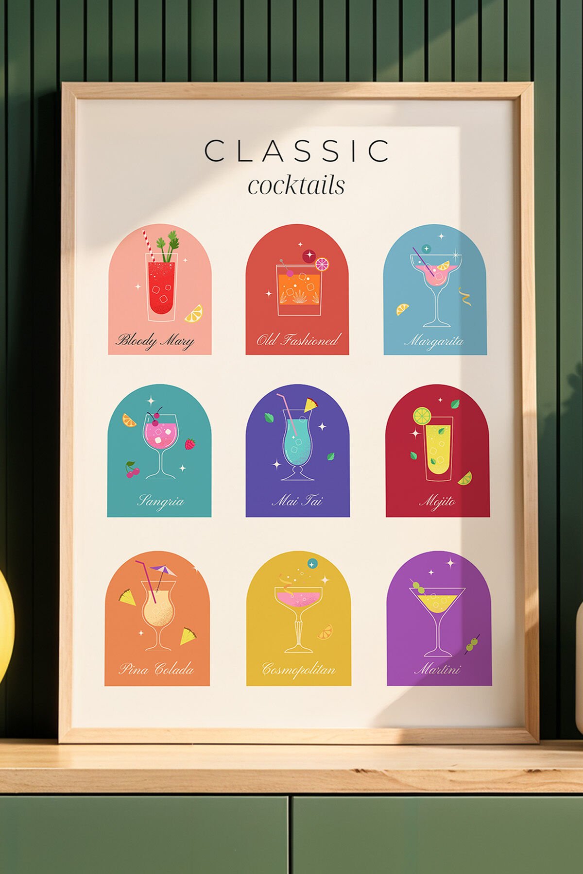DOĞAL AHŞAP - Klasik Kokteyller Mutfak Ahşap Çerçeveli Duvar Tablosu
