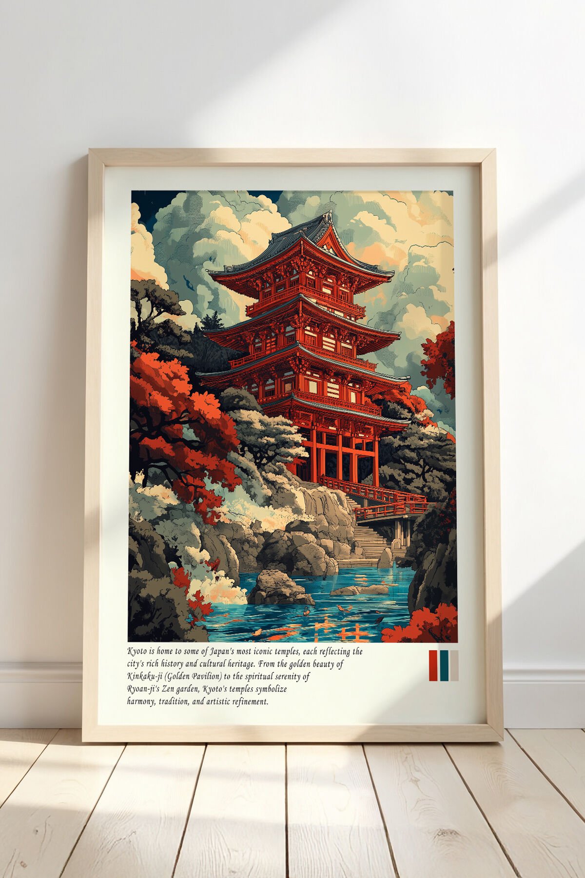 DOĞAL AHŞAP - Kyoto Tapınak Manzarası Doğal Ahşap Çerçeveli Duvar Tablosu