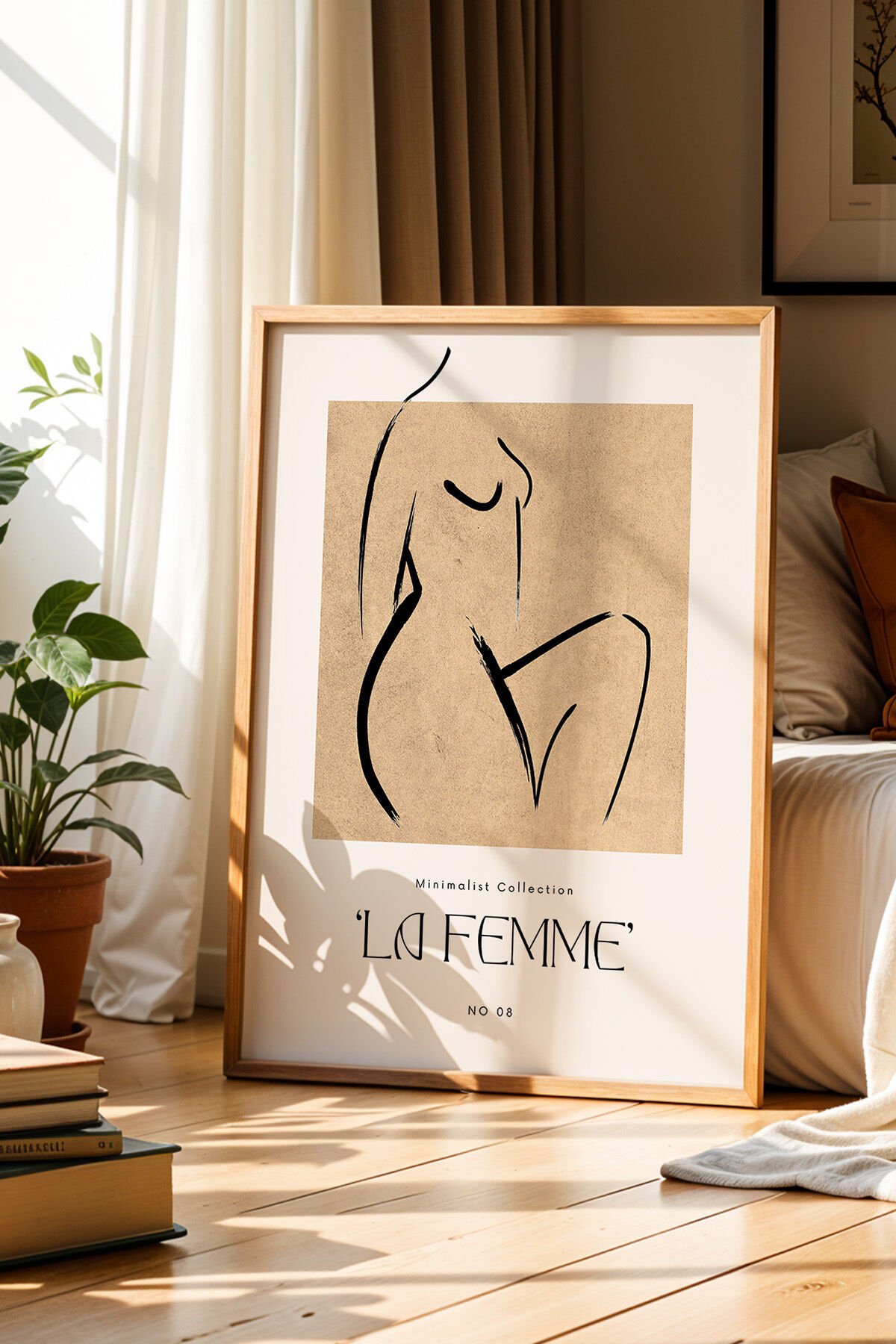 DOĞAL AHŞAP - La Femme Kadın Figür Çizimi Kahverengi Doğal Ahşap Çerçeveli Duvar Tablosu