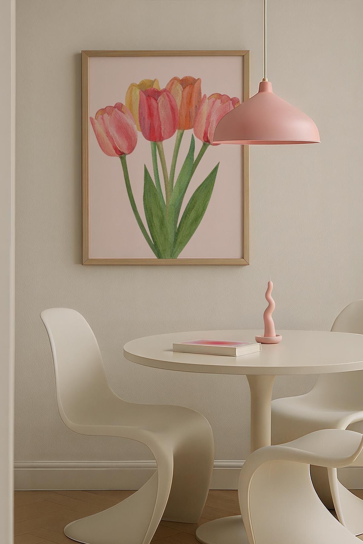 DOĞAL AHŞAP - Lale Deseni Yeşil Maksimalist Sanatı Ahşap Çerçeveli Duvar Tablosu