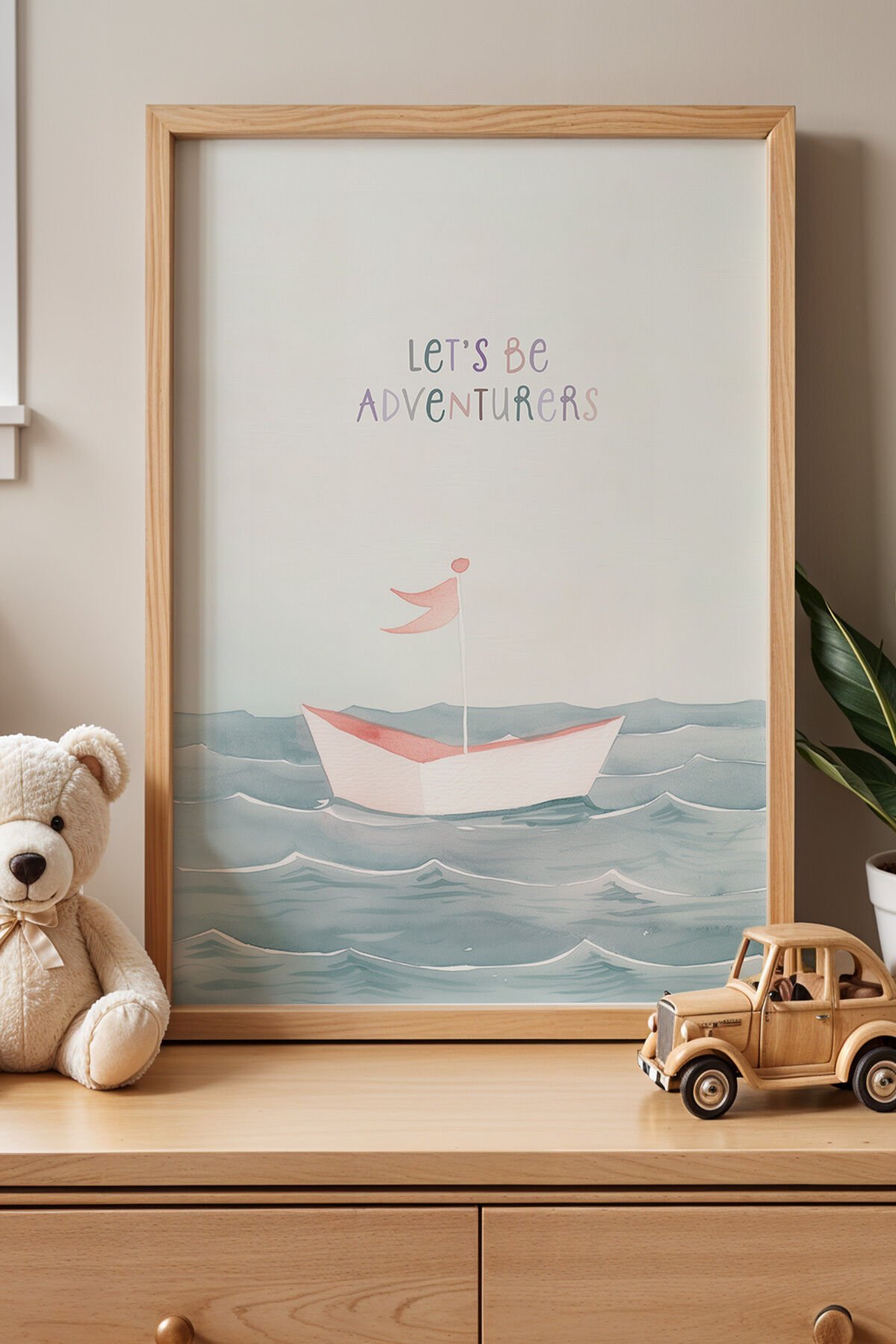 DOĞAL AHŞAP - Macera Yelkenlisi Doğal Ahşap Çerçeveli Çocuk ve Bebek Odası Tablosu