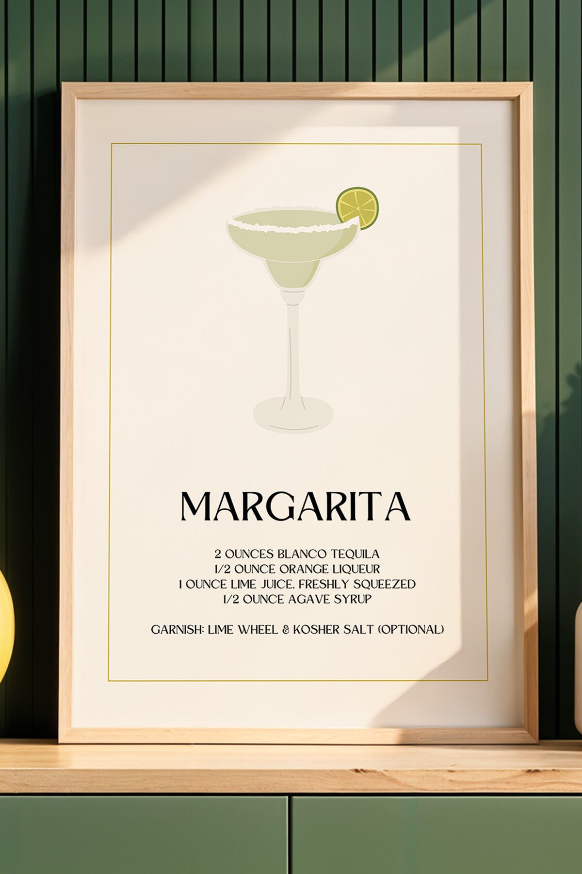 DOĞAL AHŞAP - Margarita Kokteyl Tarifi Mutfak Ahşap Çerçeveli Duvar Tablosu