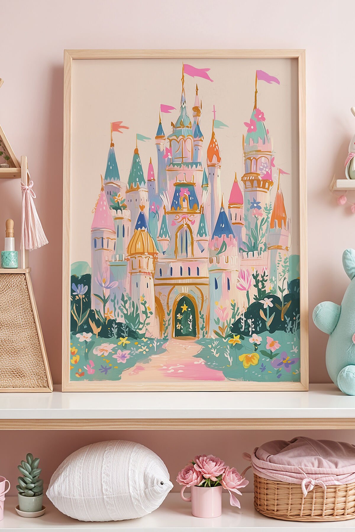 DOĞAL AHŞAP - Masal Şatosu Temalı Çocuk Odası Ahşap Çerçeveli Duvar Tablosu