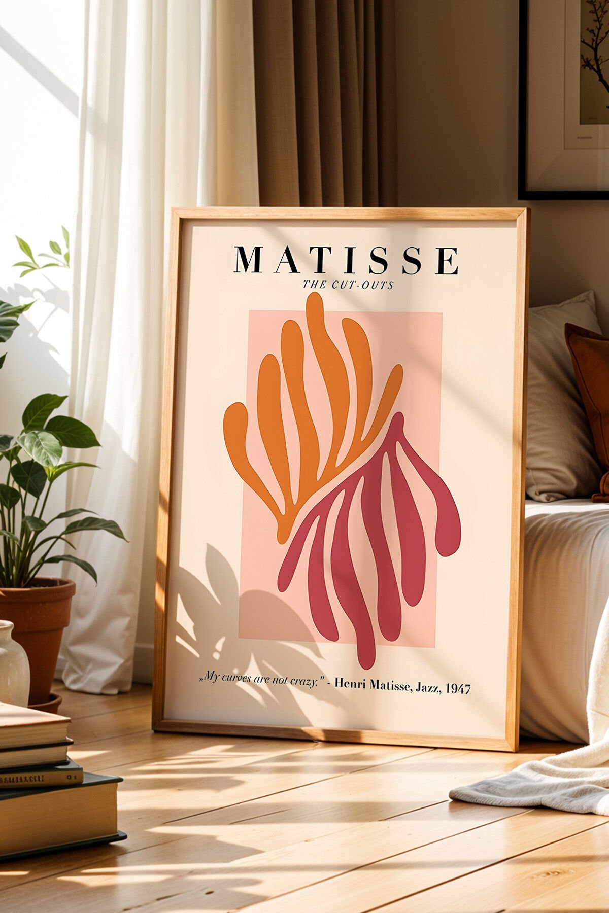 DOĞAL AHŞAP - Matisse Yaprak Desen Bohem Kahverengi Minimalist Ahşap Çerçeveli Duvar Tablosu