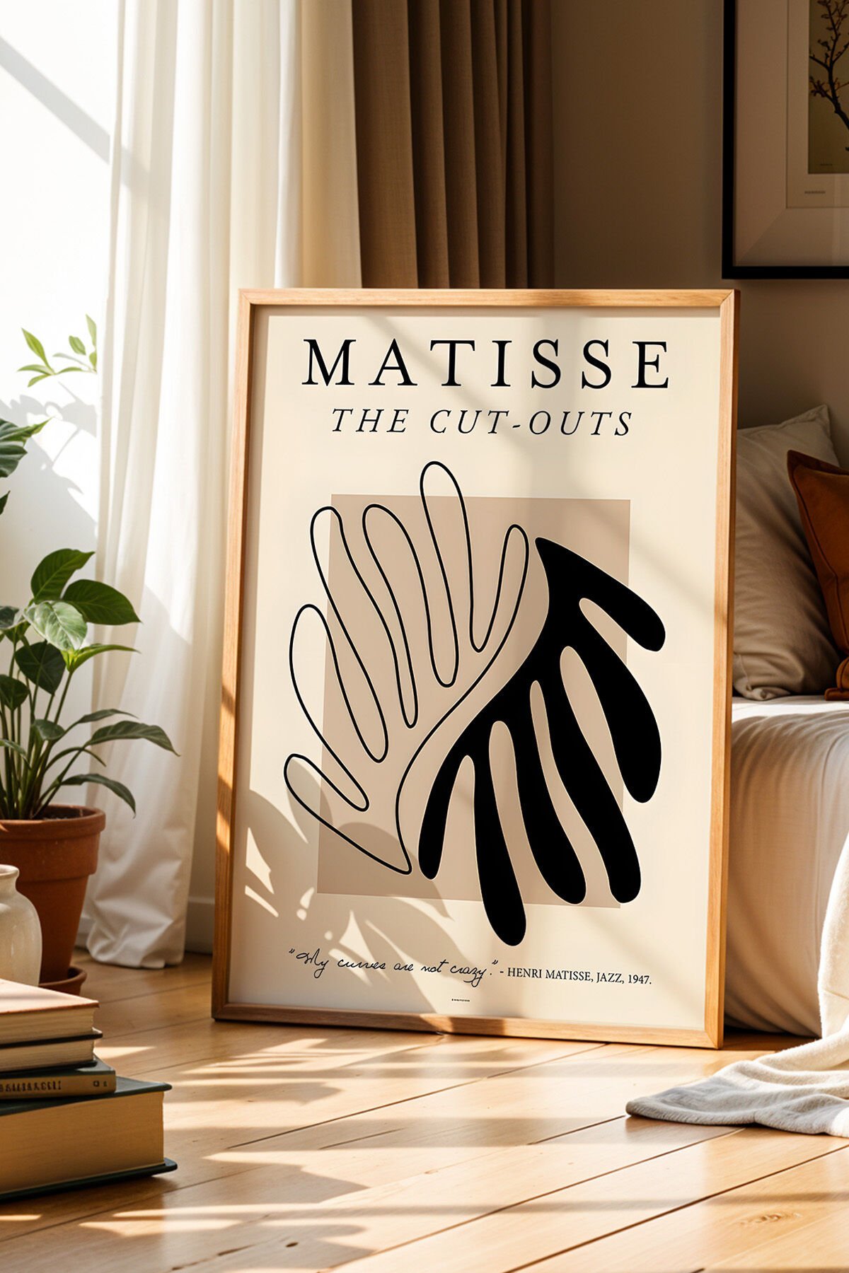 DOĞAL AHŞAP - Matisse Yaprak Deseni Bohem Minimalist Ahşap Çerçeveli Duvar Tablosu