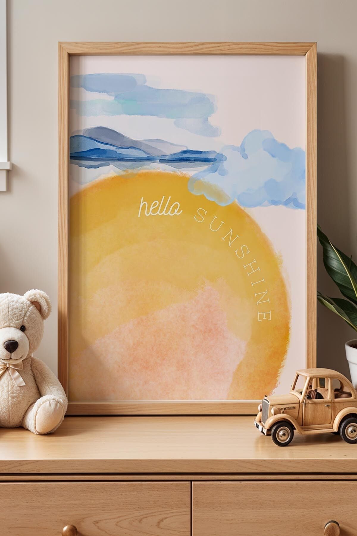 DOĞAL AHŞAP - Merhaba Güneş Işığı Çocuk Odası Ahşap Çerçeveli Duvar Tablosu