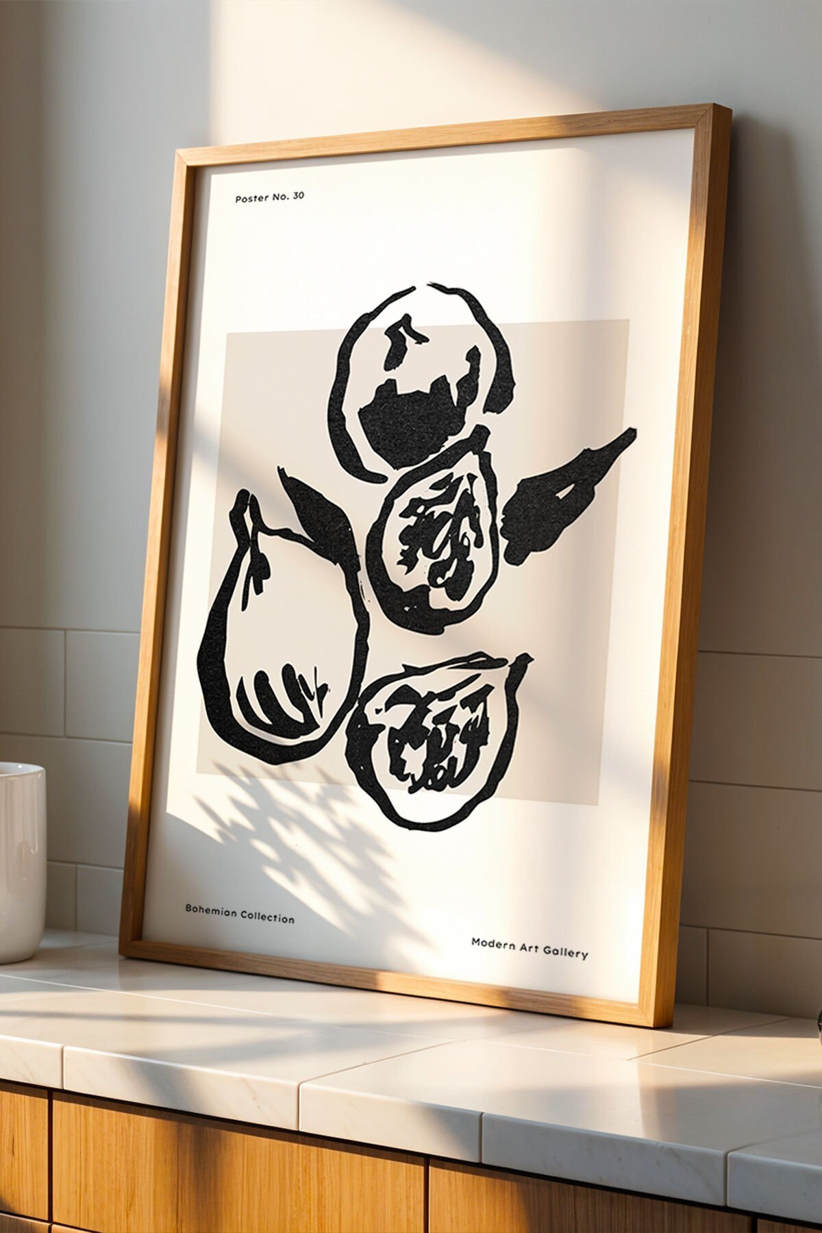 DOĞAL AHŞAP - Minimalist Fig – Doğal Ahşap Çerçeveli Mutfak Duvar Tablosu