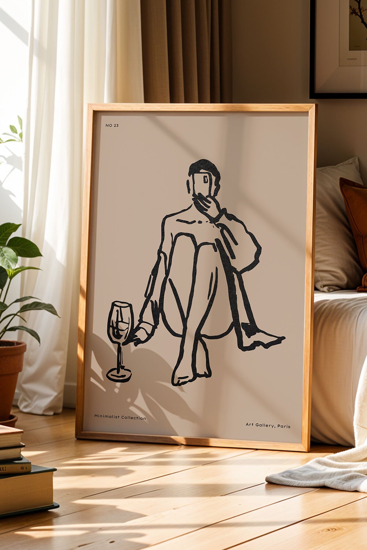 DOĞAL AHŞAP - Minimalist Figüratif Doğal Ahşap Çerçeveli Duvar Bohem Tablosu