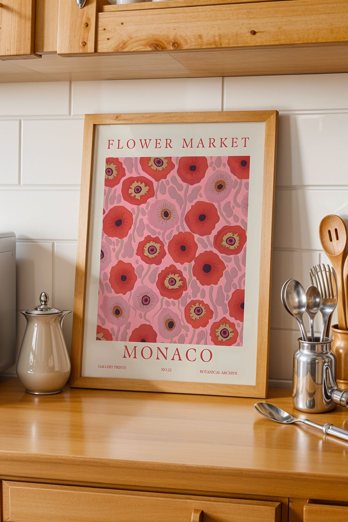 DOĞAL AHŞAP - Monaco – Doğal Ahşap Çerçeveli Flower Market Monaco Minimalist Sanatsal Tablo