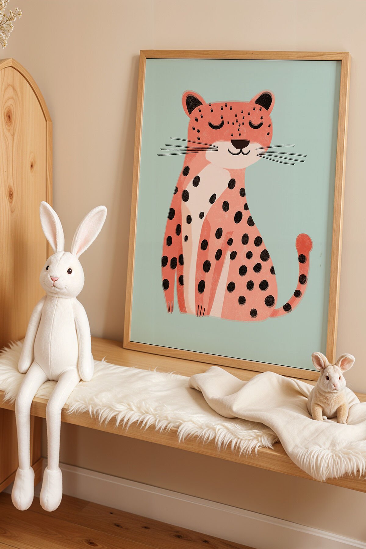 DOĞAL AHŞAP - Mutlu Çita Çocuk Odası Ahşap Çerçeveli Duvar Tablosu