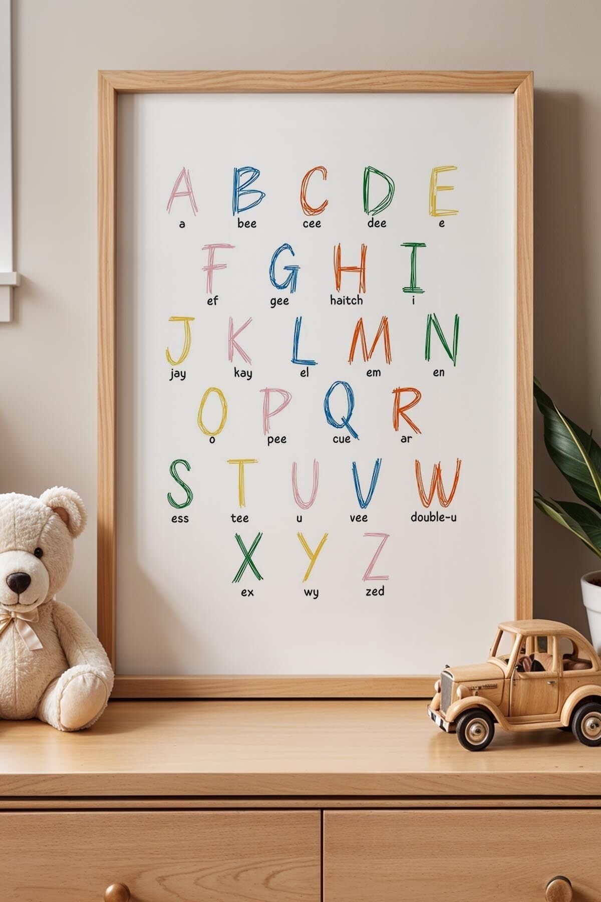 DOĞAL AHŞAP - Öğretici İngilizce Alfabe Çocuk Odası Ahşap Çerçeveli Duvar Tablosu