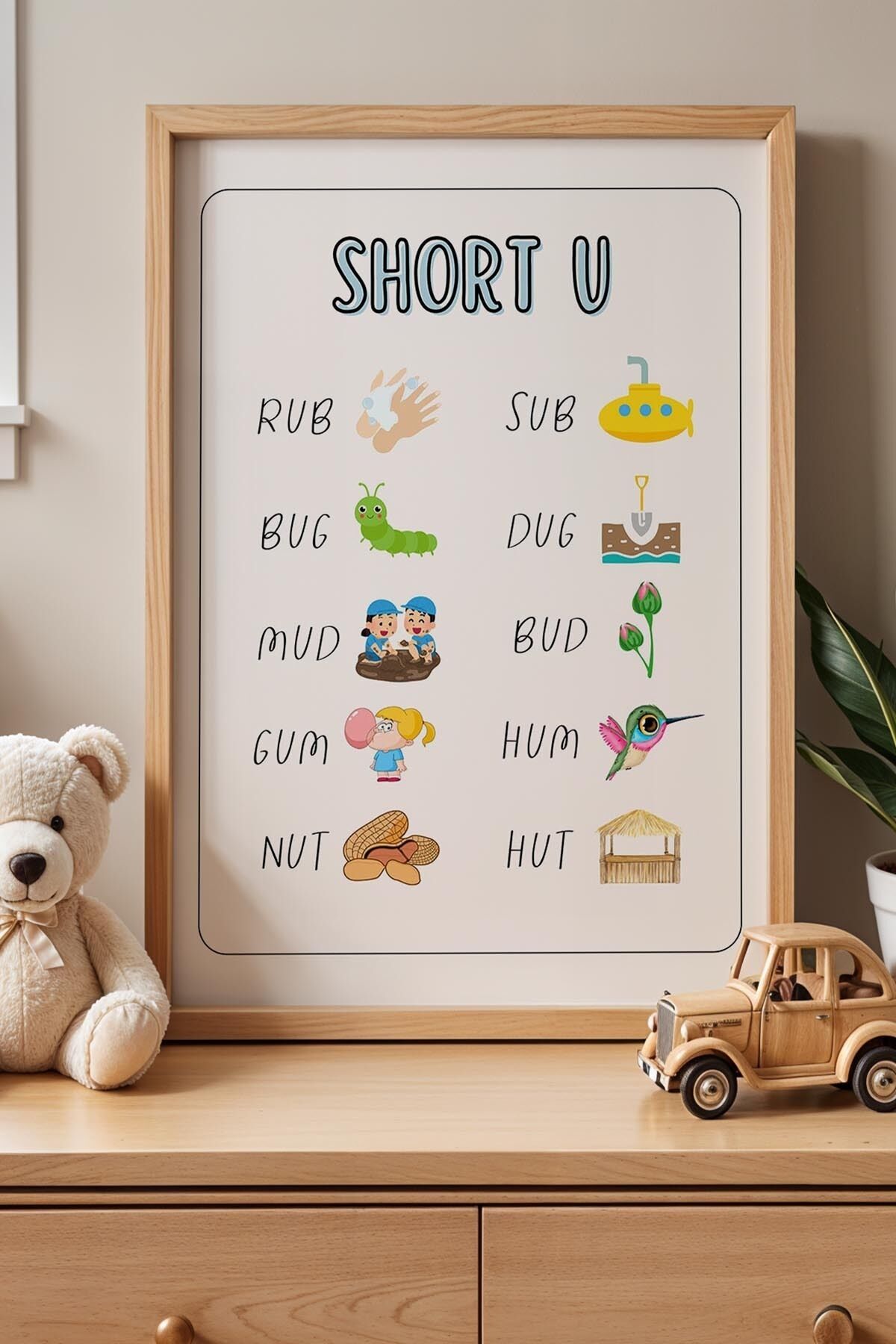 DOĞAL AHŞAP - Öğretici İngilizce Kelimeler Çocuk Odası Ahşap Çerçeveli Duvar Tablosu