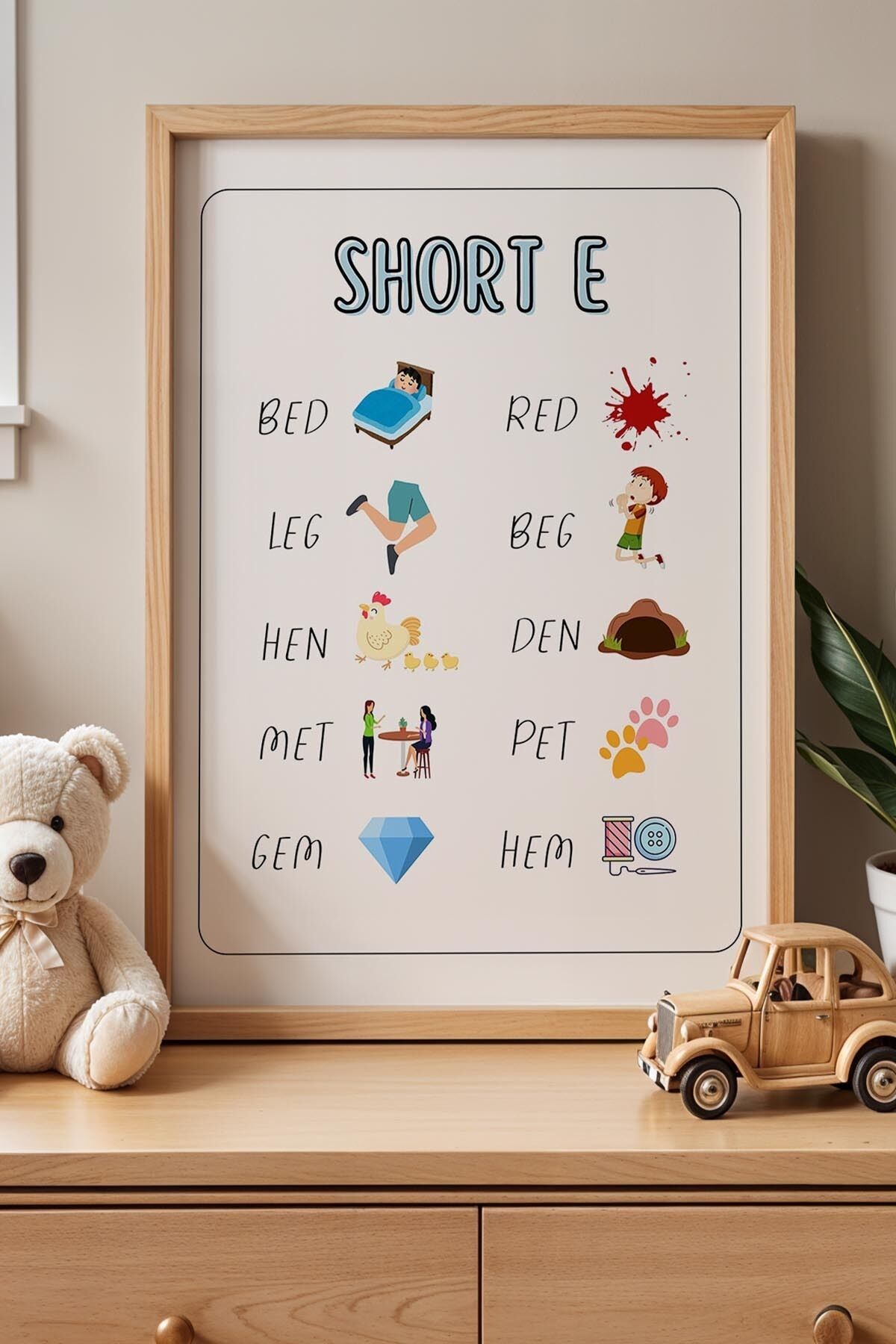 DOĞAL AHŞAP - Öğretici İngilizce Kelimeler Çocuk Odası Ahşap Çerçeveli Duvar Tablosu