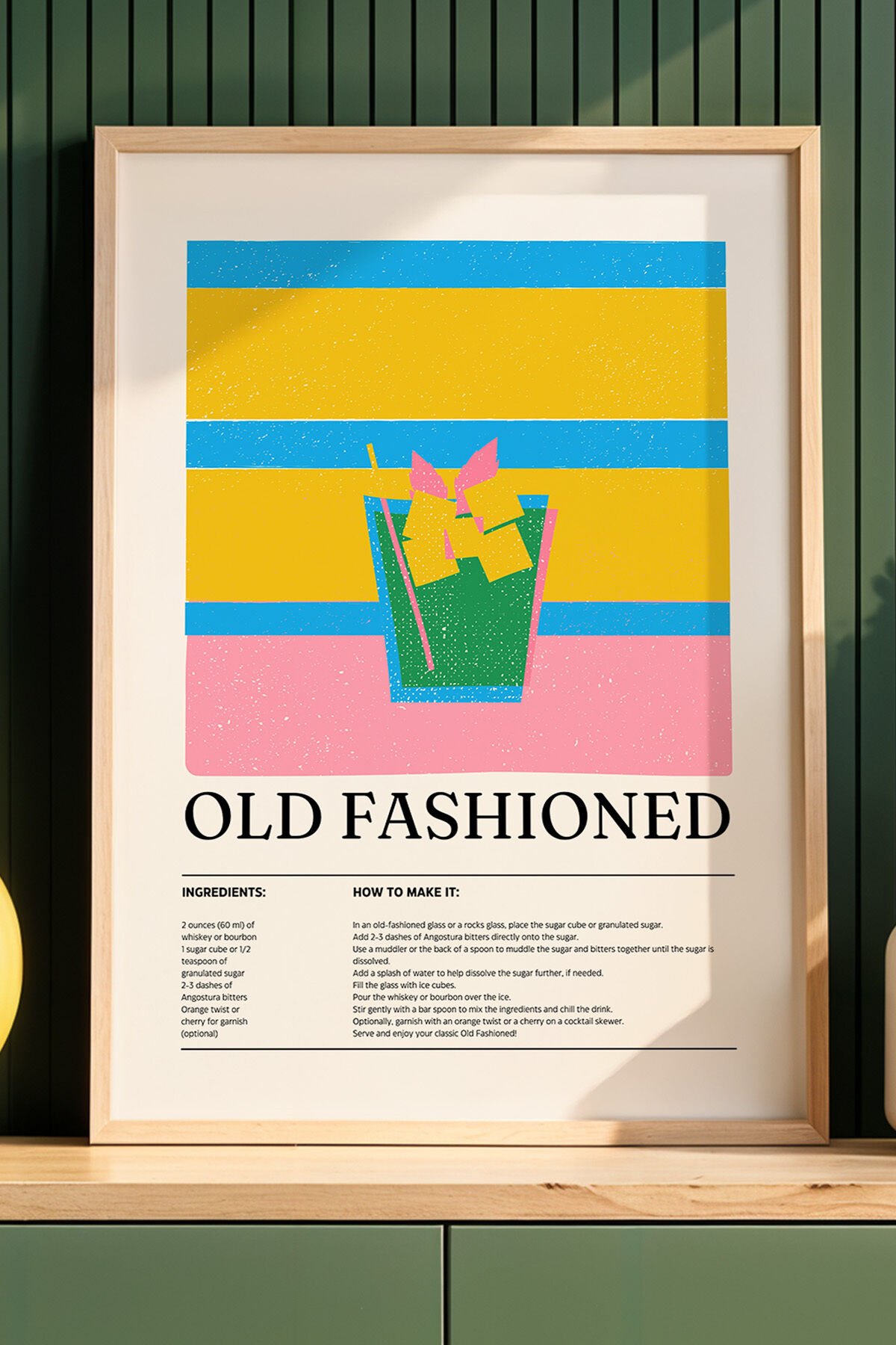 DOĞAL AHŞAP - Old Fashioned Tarifi Mutfak Ahşap Çerçeveli Duvar Tablosu