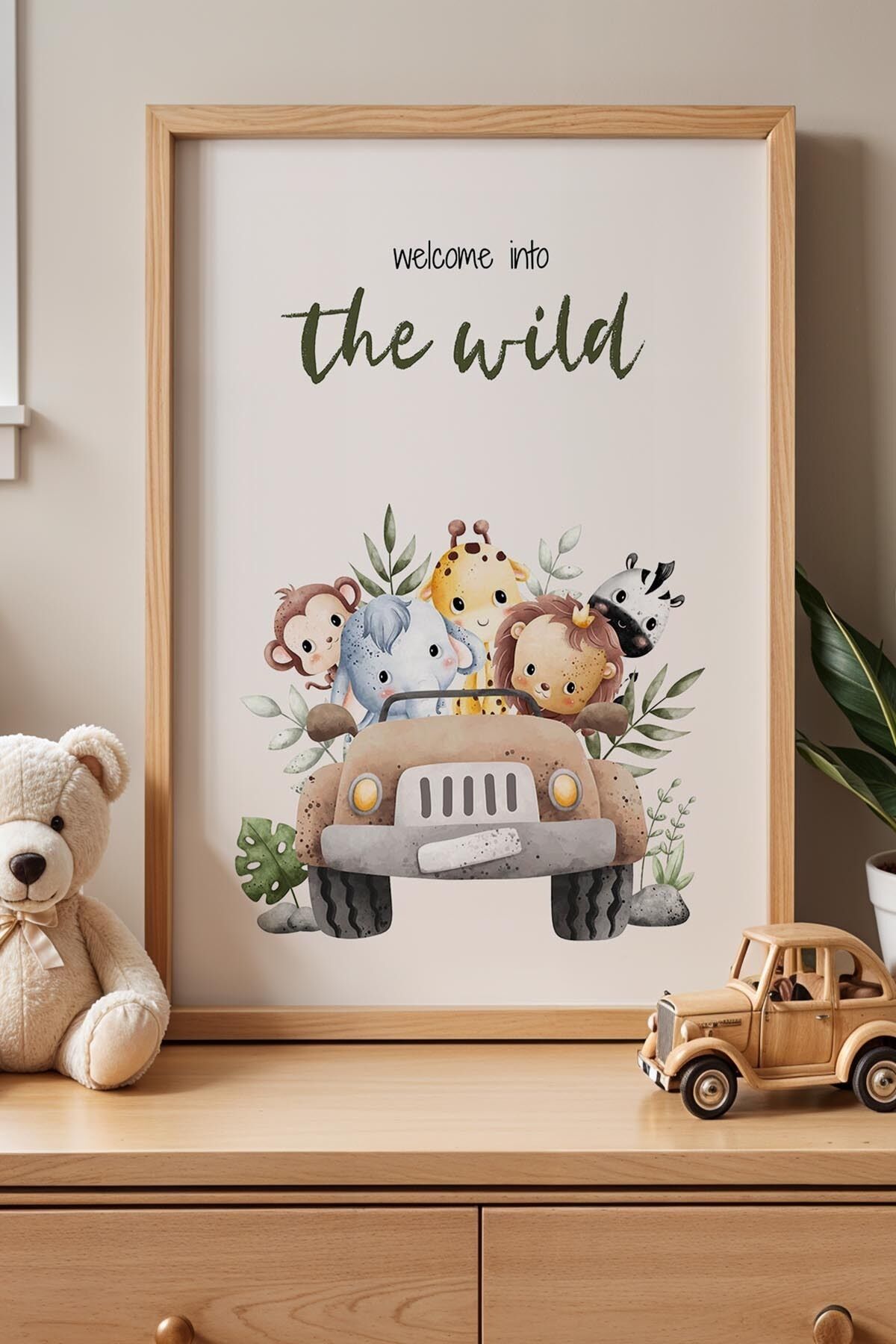 DOĞAL AHŞAP - Orman Hayvanlarıyla Dünya Turu Çocuk Odası Ahşap Çerçeveli Duvar Tablosu