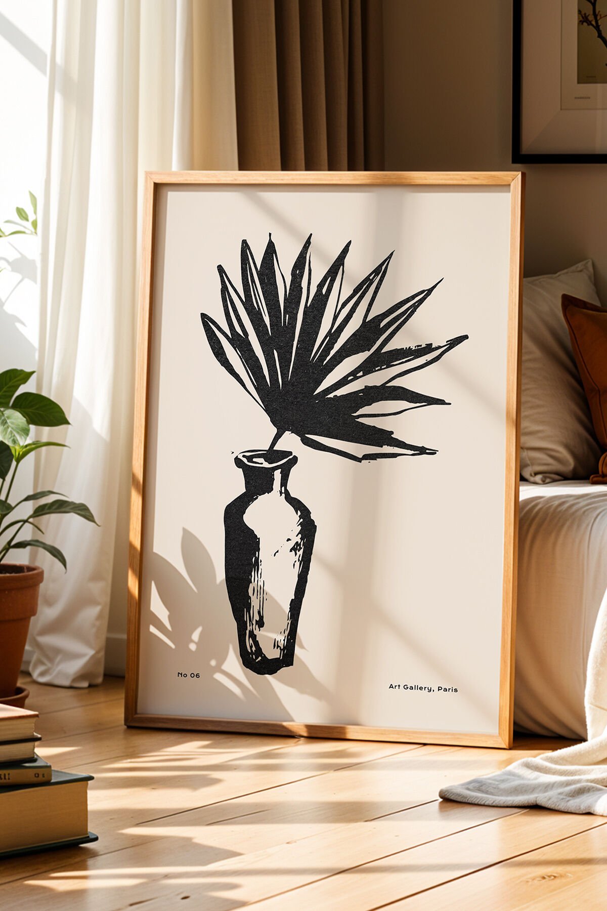 DOĞAL AHŞAP - Palmiye Esintisi - Art Gallery Bohem Vazo Ahşap Çerçeveli Duvar Tablosu