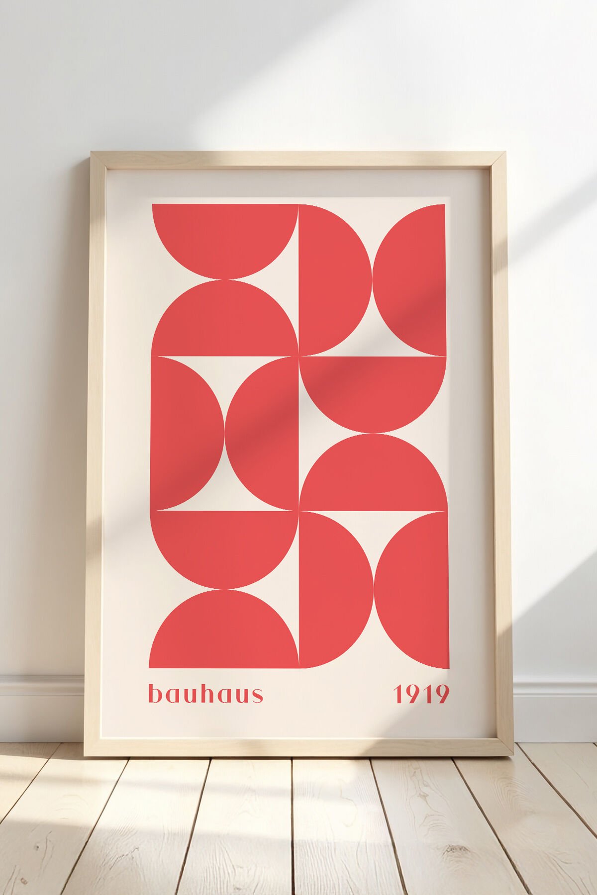 DOĞAL AHŞAP - Pembe Bauhaus Stili Vintage Geometrik Sanat Minimalist Boho Ahşap Çerçeveli Duvar Tablosu