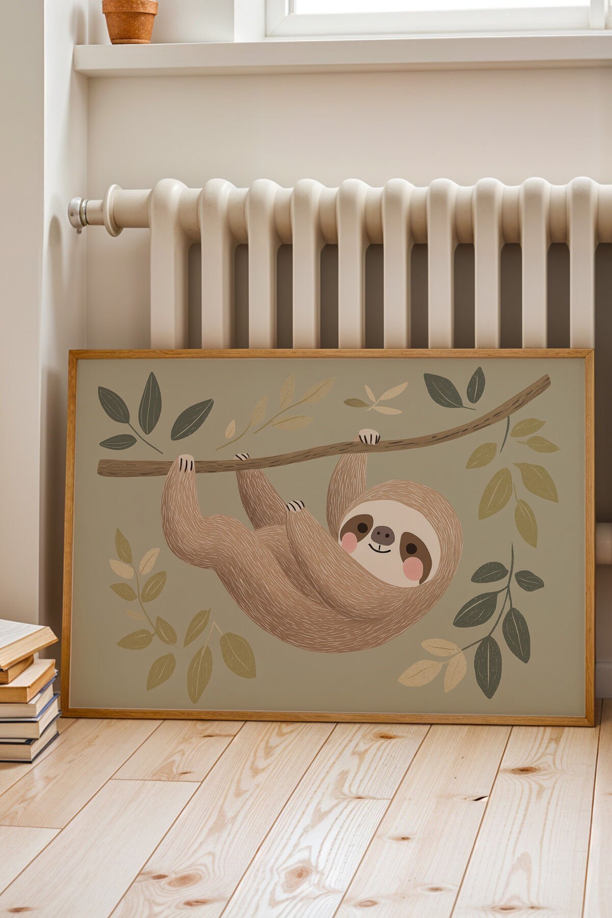 DOĞAL AHŞAP - Rakundan Sarılma Doğal Ahşap Çerçeveli Çocuk ve Bebek Odası Tablosu