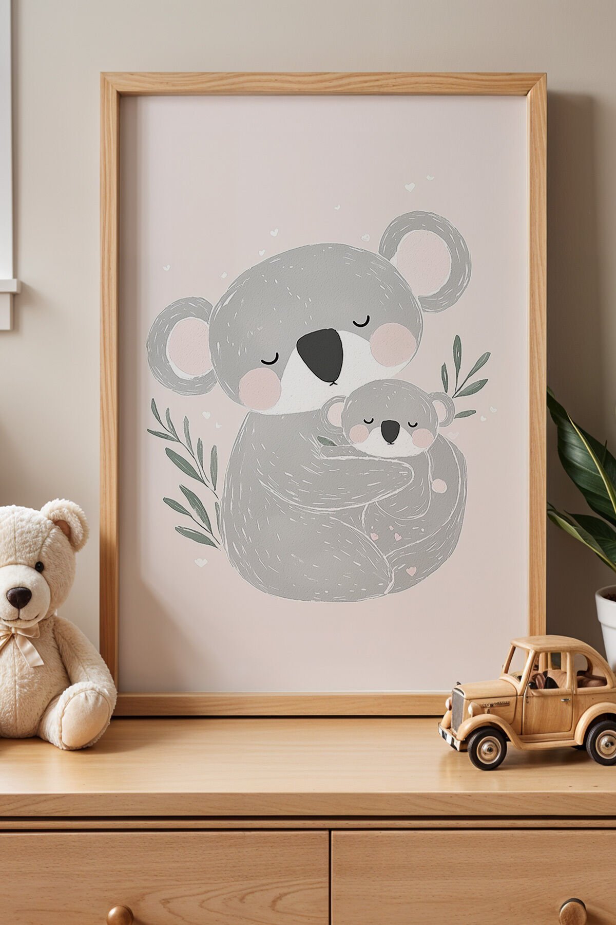 DOĞAL AHŞAP - Rakundan Sarılma Doğal Ahşap Çerçeveli Çocuk ve Bebek Odası Tablosu