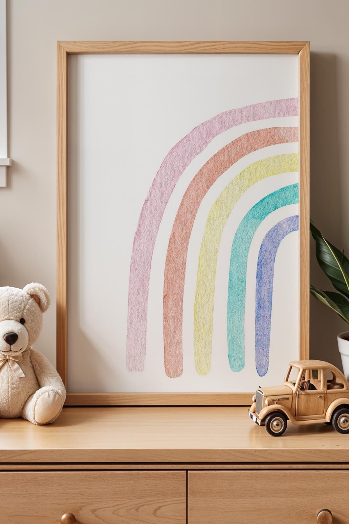 DOĞAL AHŞAP - Renkli Çizim Çocuk Odası Ahşap Çerçeveli Duvar Tablosu
