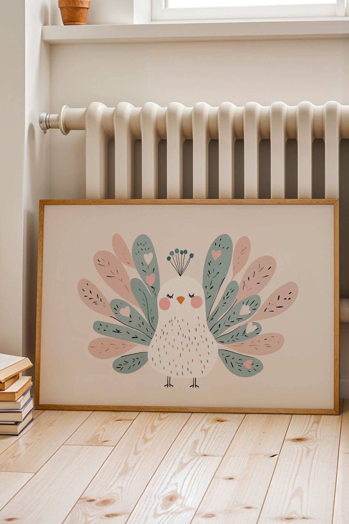 DOĞAL AHŞAP - Renkli Tüyleriyle Tavus Kuşu - Doğal Ahşap Çerçeveli Çocuk ve Bebek Odası Tablosu