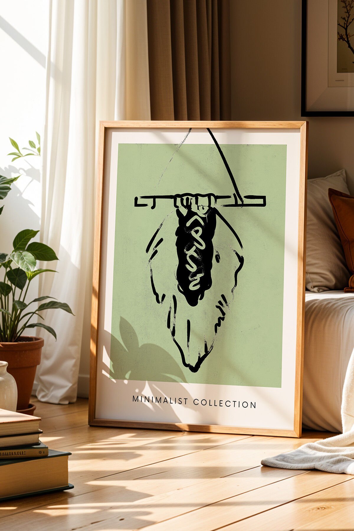 DOĞAL AHŞAP - Rüya Kapanı Yeşil Renkli Minimalist Bohem Doğal Ahşap Çerçeveli Duvar Tablosu