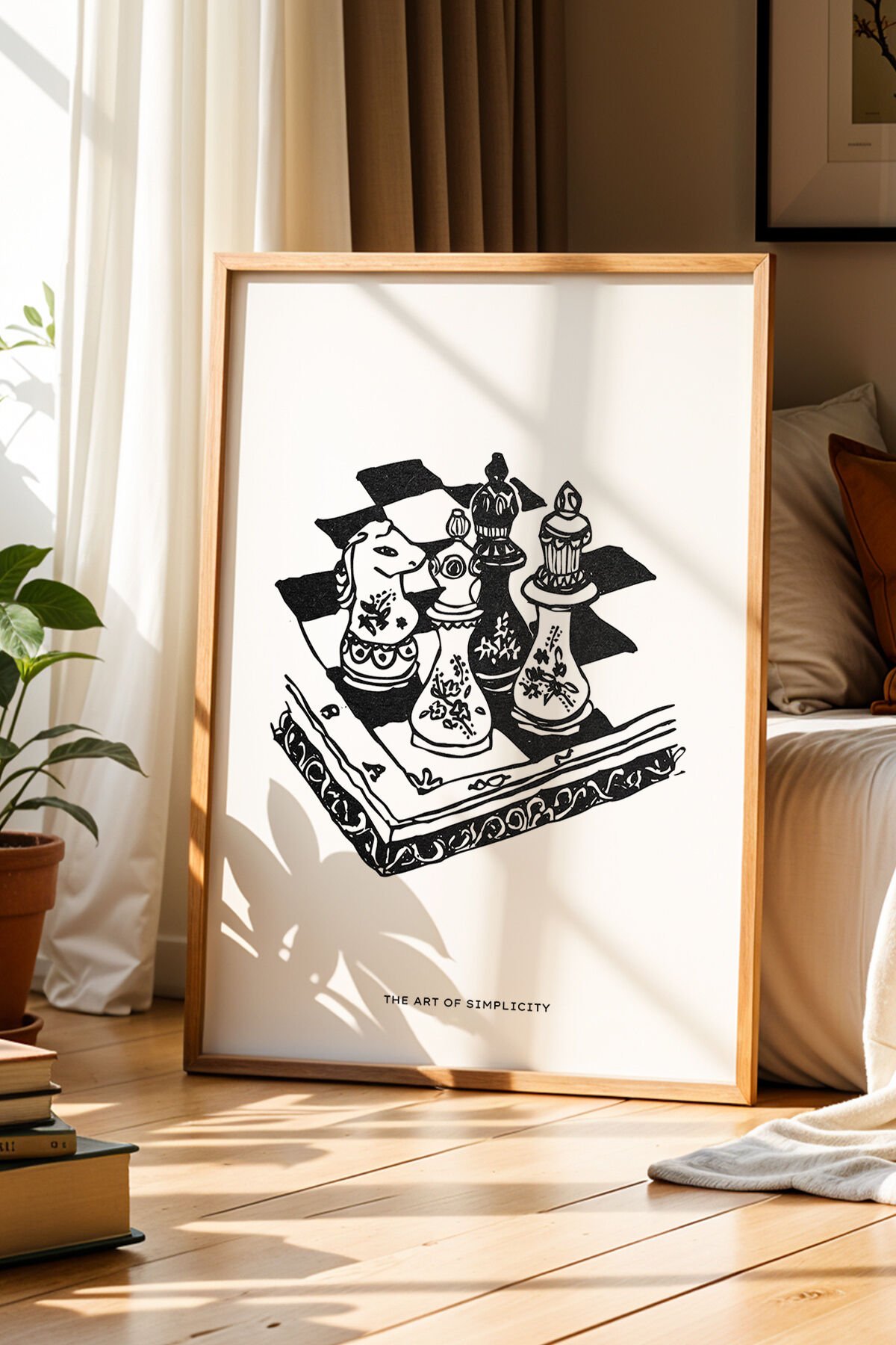 DOĞAL AHŞAP - Şah Mat Bohem Satranç Sanatı Ahşap Çerçeveli Duvar Tablosu