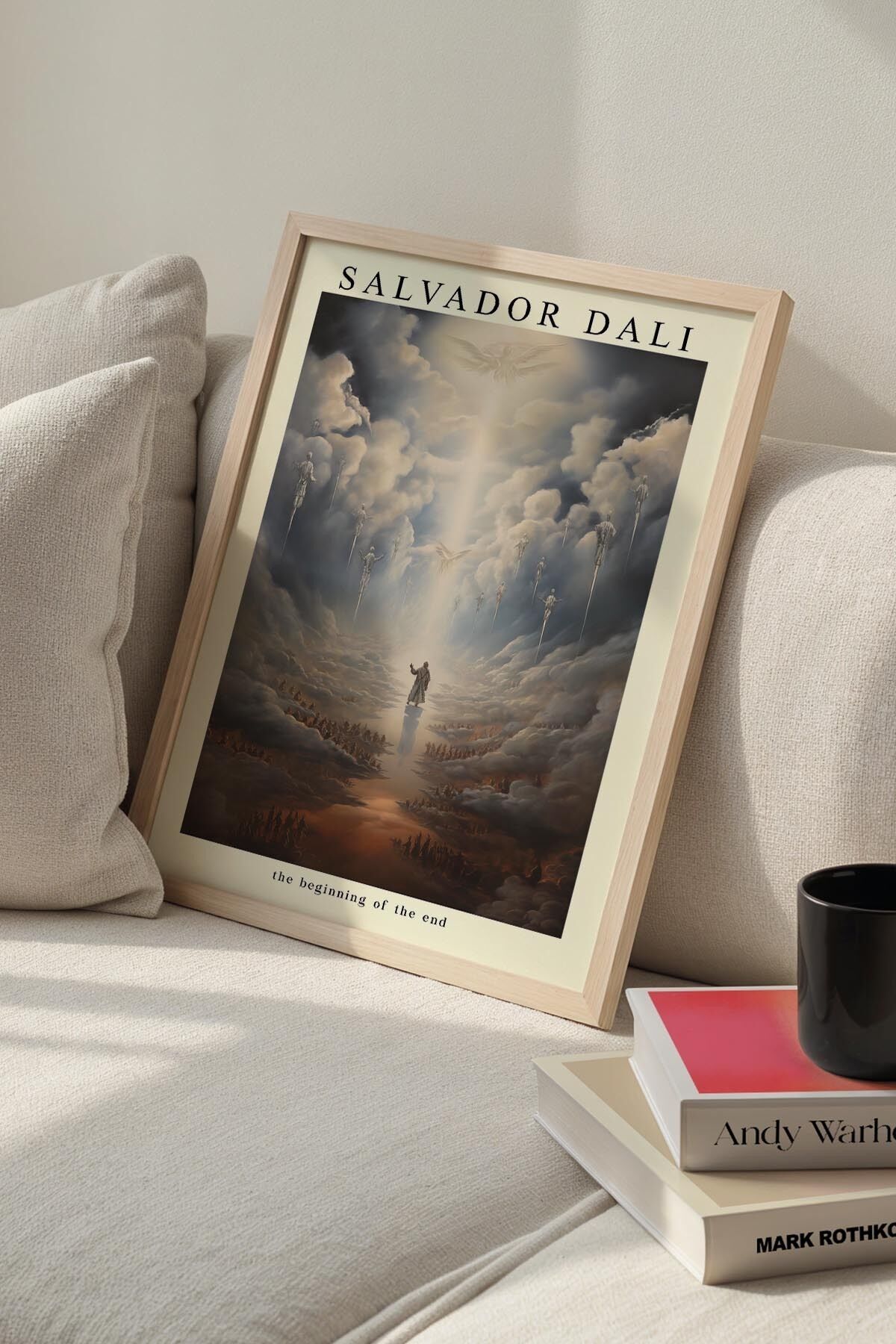 DOĞAL AHŞAP - Salvador Dali Fırtına ve Yükselen Figür Ahşap Çerçeveli Duvar Tablosu
