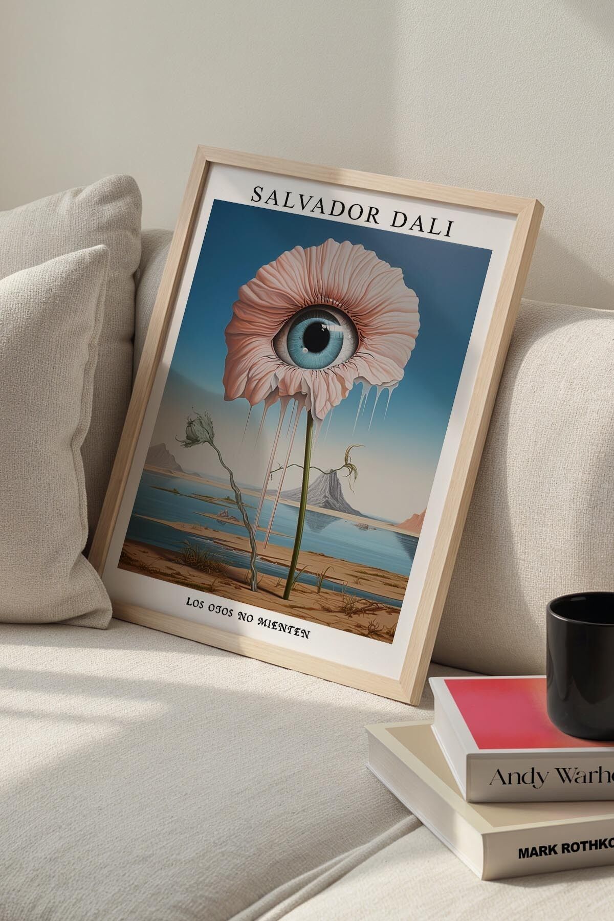 DOĞAL AHŞAP - Salvador Dali Göz Çiçeği ve Sürreal Doğa Ahşap Çerçeveli Duvar Tablosu