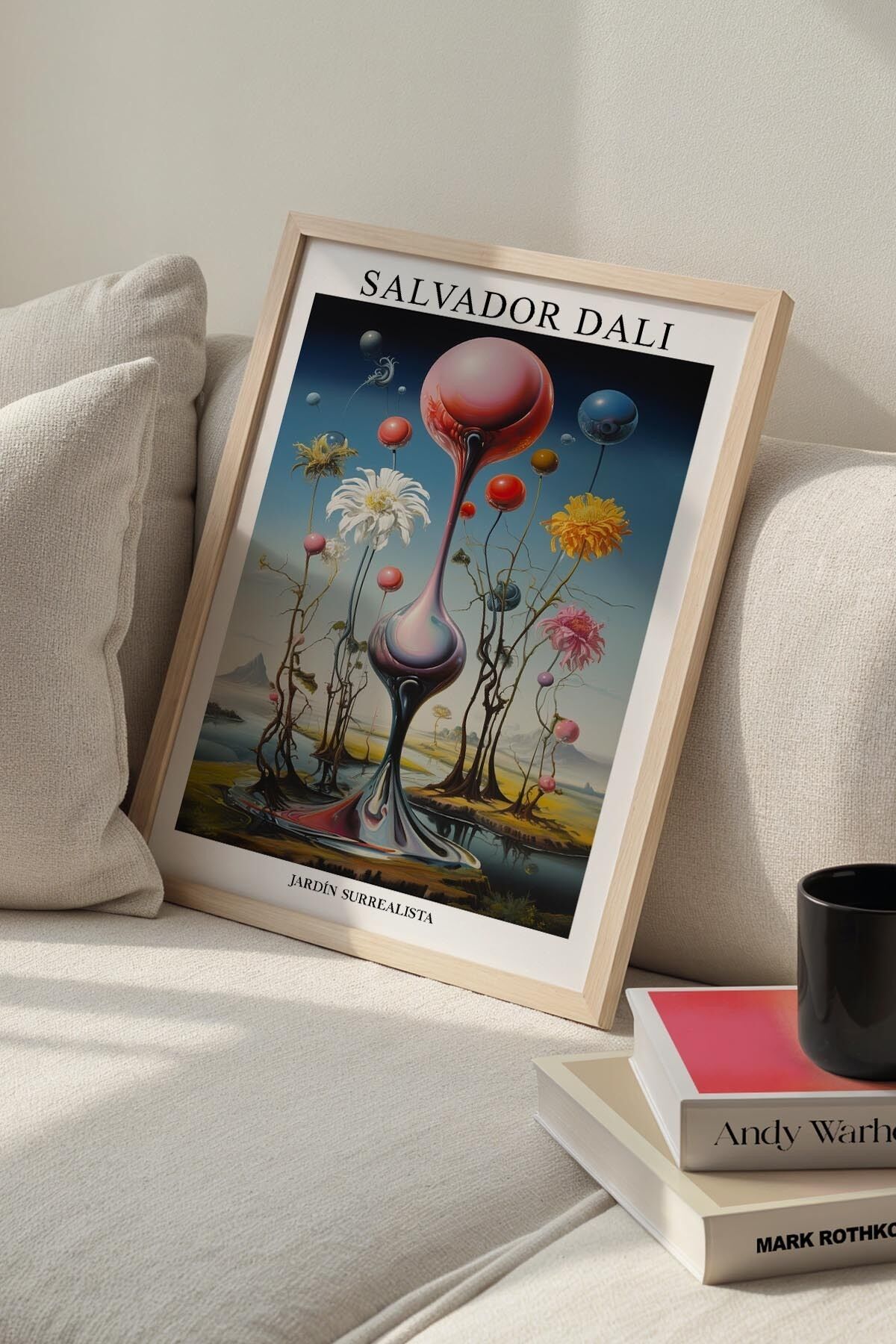 DOĞAL AHŞAP - Salvador Dali Sürreal Çiçekler ve Küreler Ahşap Çerçeveli Duvar Tablosu